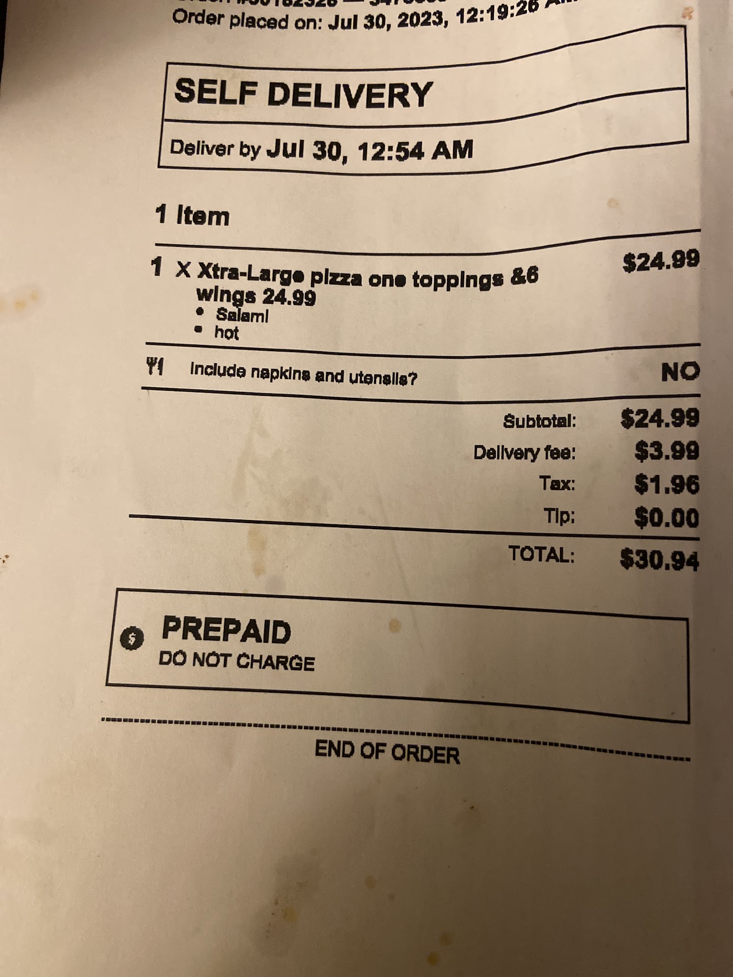 Firstly, the delivery of my order surpassed the one-hour mark, which is significantly beyond a reasonable wait time, especially considering no prior indication was given that such a delay might occur. This not only disrupted my meal plans but also caused considerable inconvenience, as I had not eaten all day in anticipation of your food.