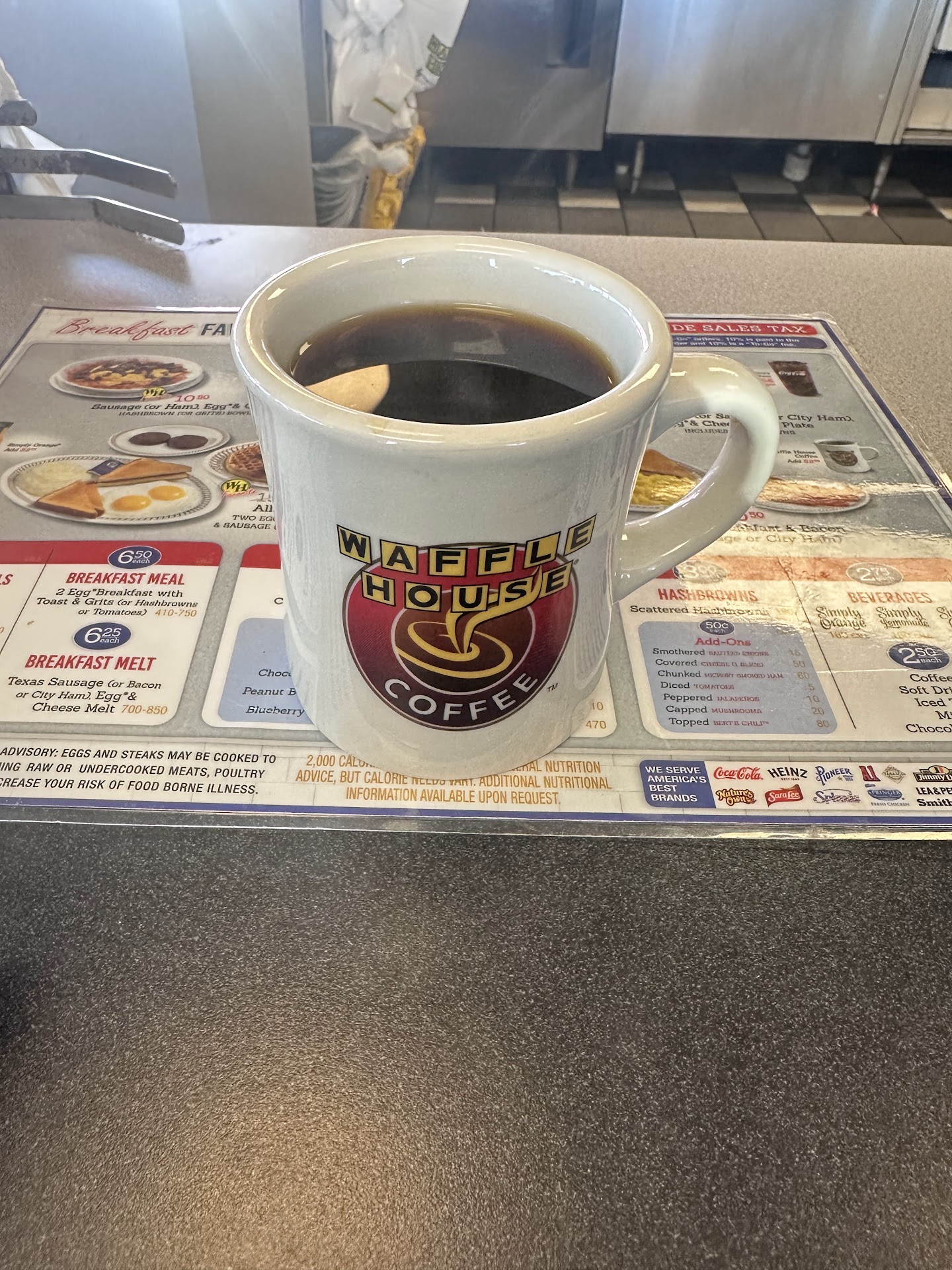 Read moreI will not be returning to this Waffle House. There was a wait so I put my name on the list to be texted when my table was ready. I sat outside and waited in my vehicle in the parking lot. When I got the text, we quickly walked up only to find out that our table had been given away. We ended up having to sit at the bar where the employees talked and talked about everything before ever taking our order. Our food sat for a while before I finally said something to the lady about getting it out to us. Our waitress never brought our food over, it had to be done by the person working the grill. I would also point out that no other tables had come in since we had arrived. There were no other food orders being handled besides ours. Our silverware was dirty when we sat down. I asked that the bacon be cooked medium and it was burnt and crispy. I love waffle house but this place...