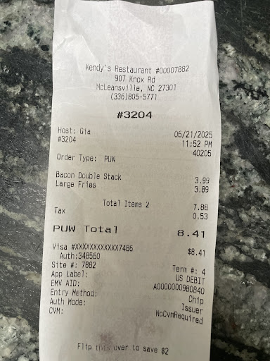 Read moreMy wife and I have gone to this Wendy's of a semi-regular basis since we moved. About two weeks ago we went and my wife ordered the Asiago Chicken Ranch sandwich. The employee that made our sandwich failed to remove the wax paper from the cheese.