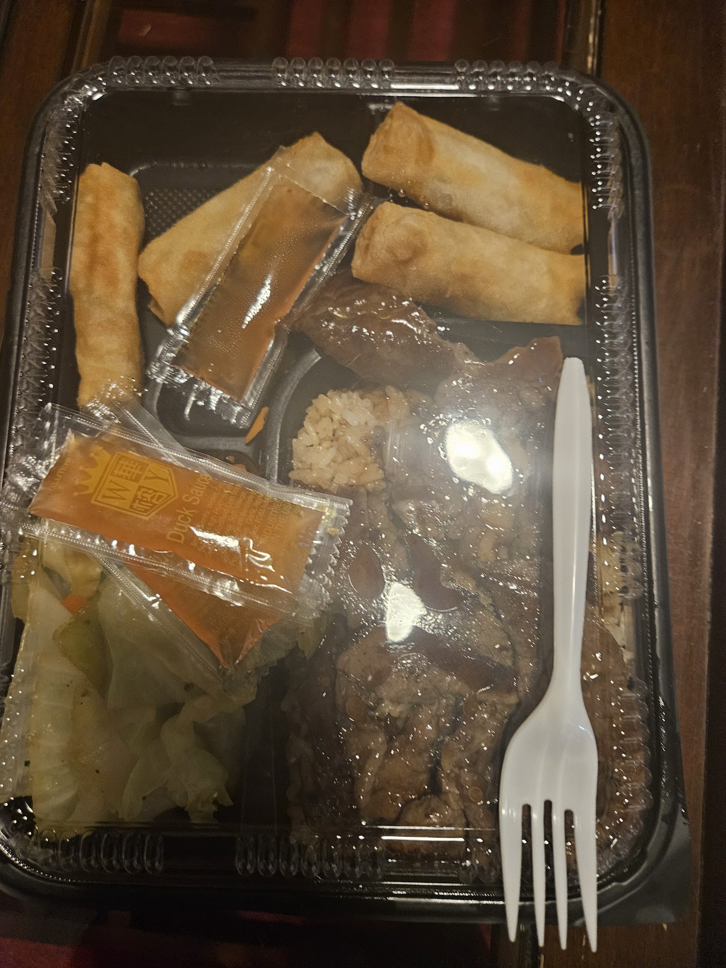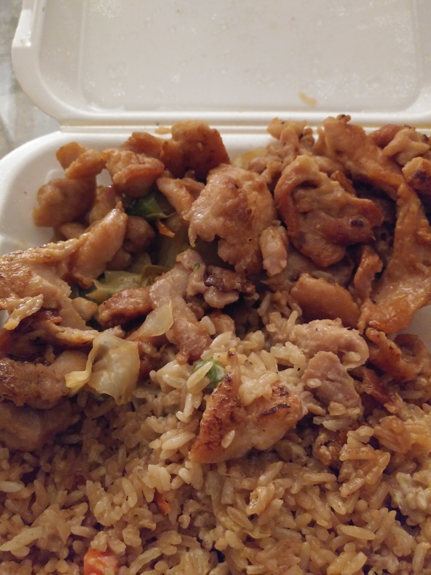 Read moreNot sure why they're using "beef" instead of steak for hibachi and teriyaki dishes. The meat they're using seems like it should be in a pepper steak or beef and broccoli dish from a Chinese restaurant. Whatever kind of beef it is - I became more suspicious with each bite until I finally just threw the plate away. It was fatty and soft - NOT TENDER. That meat could have very well been from a cow, but it would take a million dollars for ME to eat it. Do yourself a favor and go to Bamboo Grille on Elmsley. They use ribeye, and they give you hella food on the plate when...