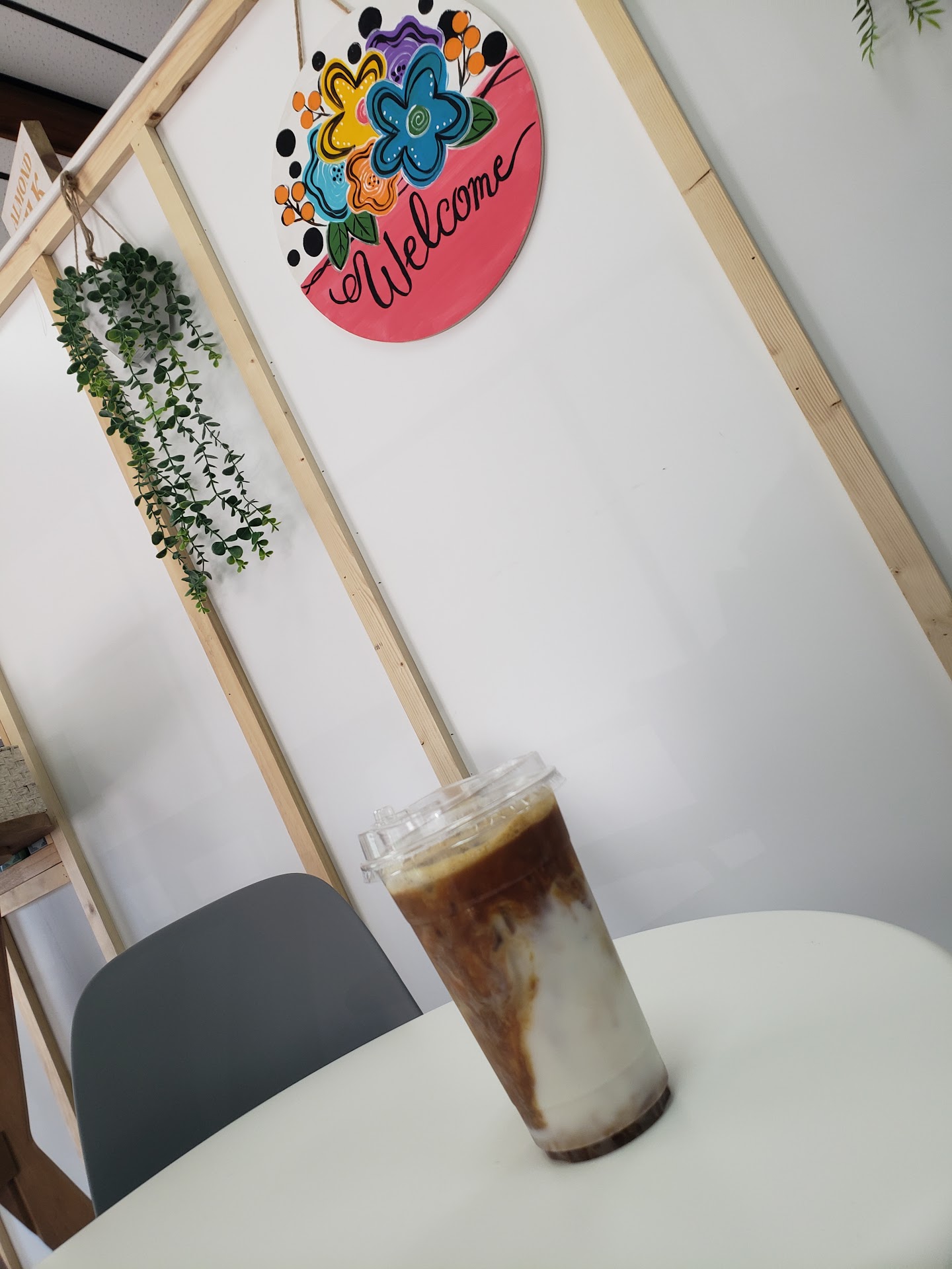 Cute atmosphere with art on the walls, a free library, and friendly staff.