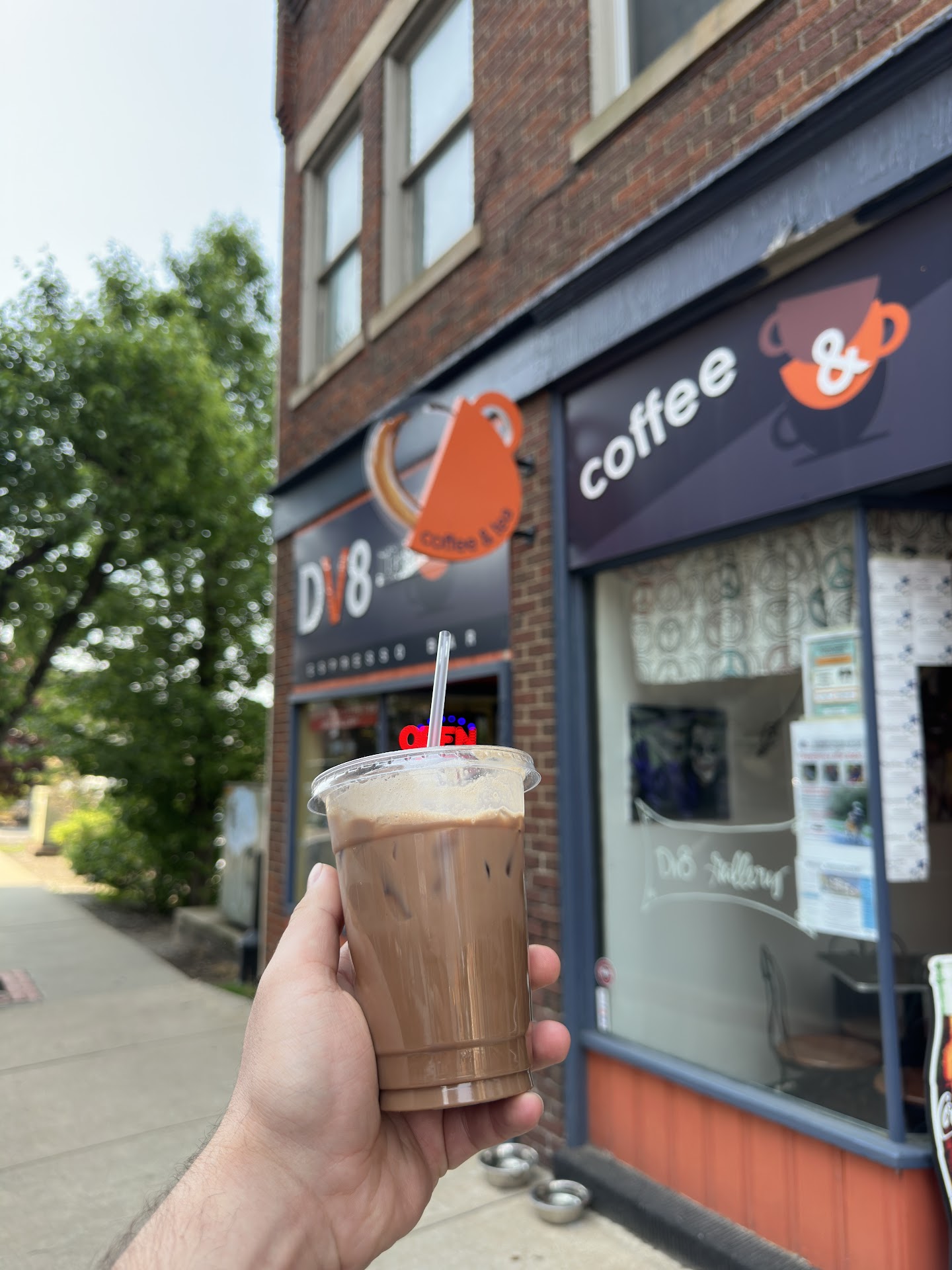 DV8 is a coffee shop owned & operated by a highly respected local counselor. This is a great place to relax & enjoy a wide variety of coffee blends & art. Artists are welcomed & encouraged to display there own talent for sale on the walls. A certain percentage of the money from sales goes to the gallery & the rest is the artists choice. Fresh brewed beans & a nice environment is what is in store for the consumer. There is a small variety of scones & well the usual coffee shop baked goods. I.E. cookies, cinnamon rolls etc. There's plenty of room for groups & friends. Prices are at a city norm. This is a nice place & if it is nice outside there is seating out front or out back of the establishment. This has become a must stop if I visit Greensburg. All around a nice...