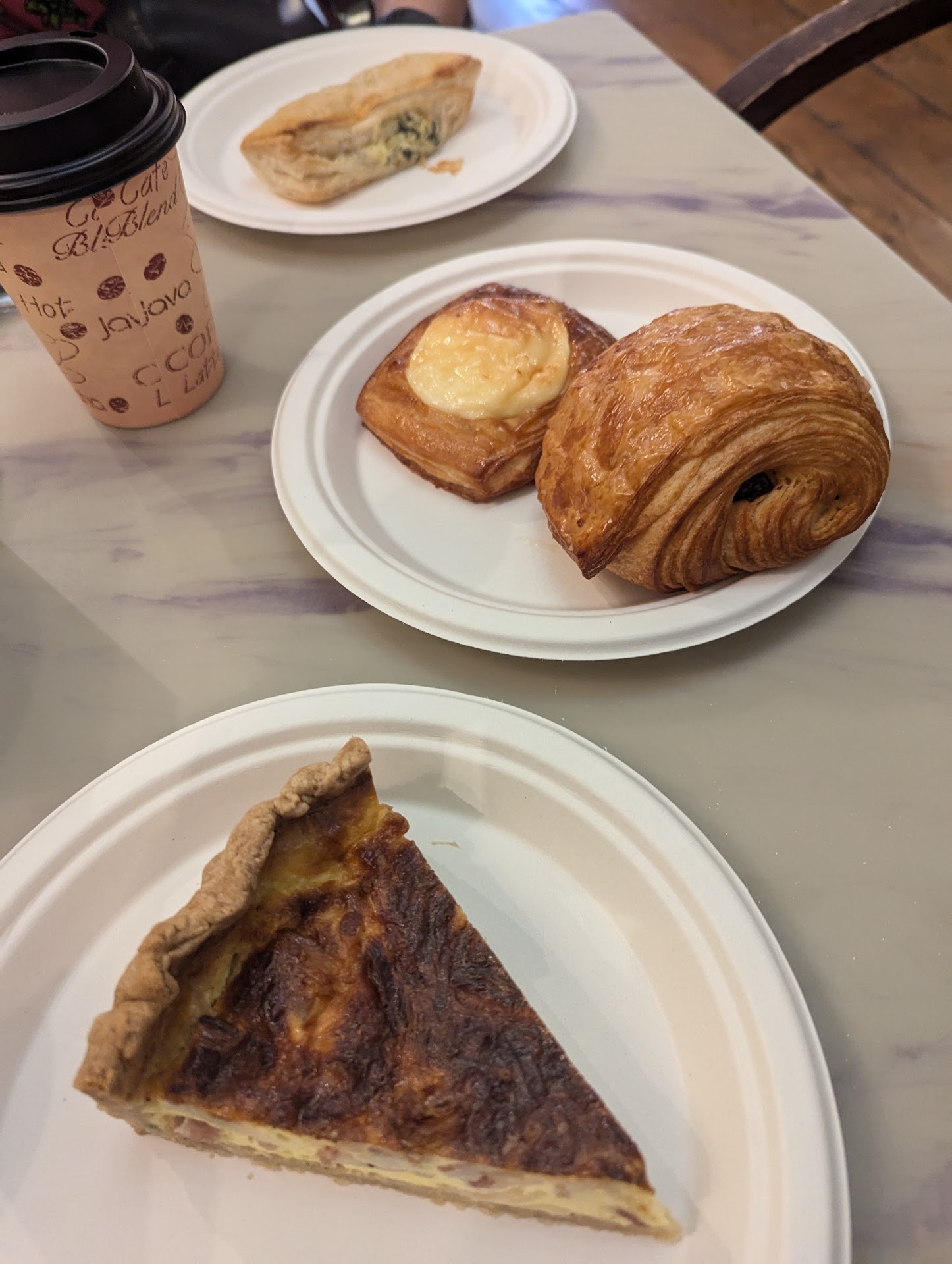 Read moreLet's get the important stuff out of the way! The BEST pain au chocolat I've ever had. Buttery, flaky, chocolatey.. Perfect. The peach fruit tart was delicious and not overly sweet with a lovely creamy and soft cheese. The quiche Lorraine was layered expertly and delicious. All in all, this is one of the best bakeries I've ever been too and should be a stop if you're ever near Greensburg. Nico talked to my daughter and I at length as well as she wants to be a pastry chef. The rest of the staff was super friendly and space is beautiful and not overly done. Can't...