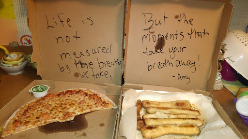 Read moreI've ordered from here several times in the past 6 months, and have always had a great experience, but today just blew me away. I ordered online, as usual, a pizza and cheese stick order (promo deal). When the young lady arrived in her blue Chevy Cavalier, I noticed she had an extra bag. Seeing what was inside (1 liter mountain dew, paper plates, cups, napkins, AND TREATS FOR MY DOG!), I said that they must have mixed up orders as I didn't ask for any of that. "Oh we know who you are when you order, and wanted to make sure you were all set." Honestly I am humbled and blessed. Young lady in the blue Cavalier, you and your crew are awesome. I owe you a $20 and then some for such a gracious act towards a stranger. Thank you so very much, from a very humbled and...