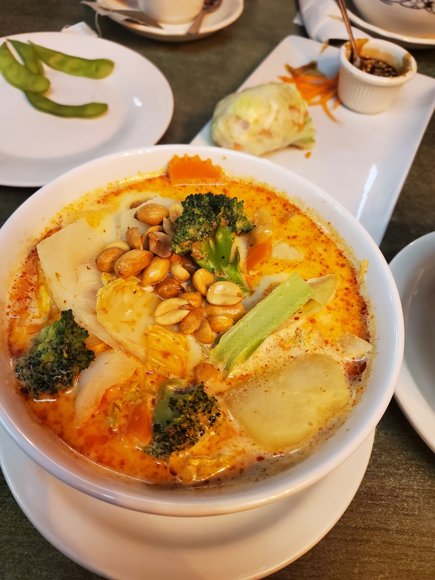 Rassame was 'meh' average overall. I had lunch portion chicken pad Thai with included vegetable tofu soup and an order of spring rolls.