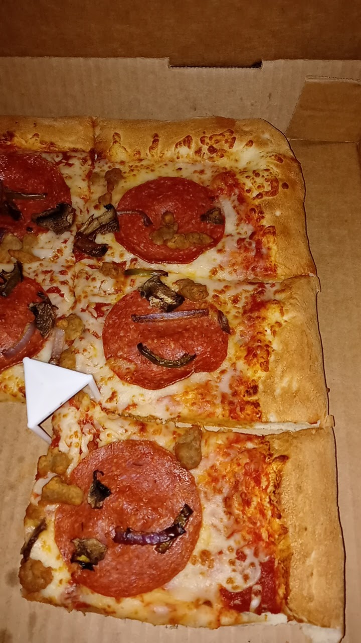 I just ordered delivery like 5 minutes ago. It was horrible. Absolutely horrible. I ordered a large pizza with extra cheese. The pizza dough was so flat and soggy, you couldn’t lift up a piece without everything falling off. It was just dangling there with nothing but sauce on it because all of the toppings fell off. This isn’t the first time they’ve either messed up on an order or it’s just been terrible but this is the first time I’m leaving a review because every time it just gets worse and worse. They have fallen off bad over the past couple of years and every time I go in person, it’s dirty and disgusting, the salad is always rotten, there’s one girl in particular there, idk if she’s the manager or not but she’s always EXTREMELY RUDE. They just need to shut down and figure out something until they can figure out how to properly run the place. I was in the bathroom one time there and there was roaches crawling all around the toilet. I had to run out of there. I’ve tried giving them many chances because they are the only pizza place that delivers in this county, but I can’t anymore because they suck. I do not recommend. Just go...