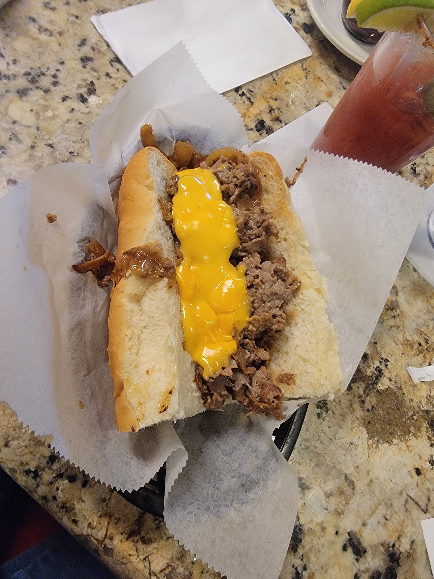 The service- Our server came and took our drink order and left to place it with the bar. She came back and delivered my drink but informed my partner they could not make his drink. He ordered another drink and she left. We watched the bar make the drink and set it out for her to grab. After 15 minutes went by with no sign of our server I went and asked someone clearing a table if they could send her over. She came over a few minutes later and was more full of excuses than apologies. We both have worked in the service industry and have patience and respect for the hard work servers do. She still did not get his drink. I asked her to get it and to place a food order.