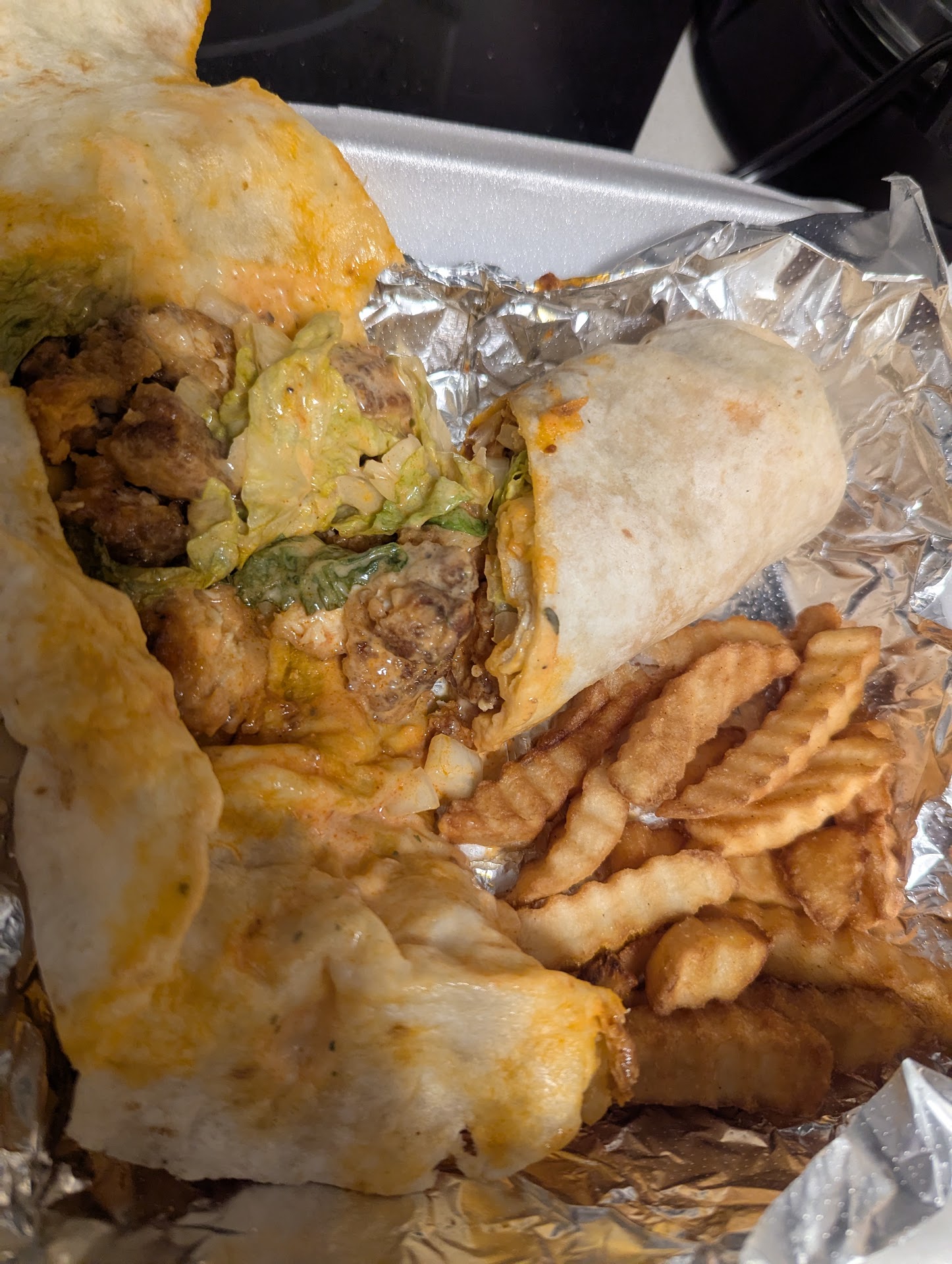 I was a walk in order, only ticket in the house. Family just leaving as I ordered. No other orders placed after I arrived. I order a chicken bacon ranch wrap. 30 min later they tell me they lost my order. I wait an additional 20 min for them to serve a buffalo chicken wrap. Also, 5.23$ cheese cake slice, key fob for...