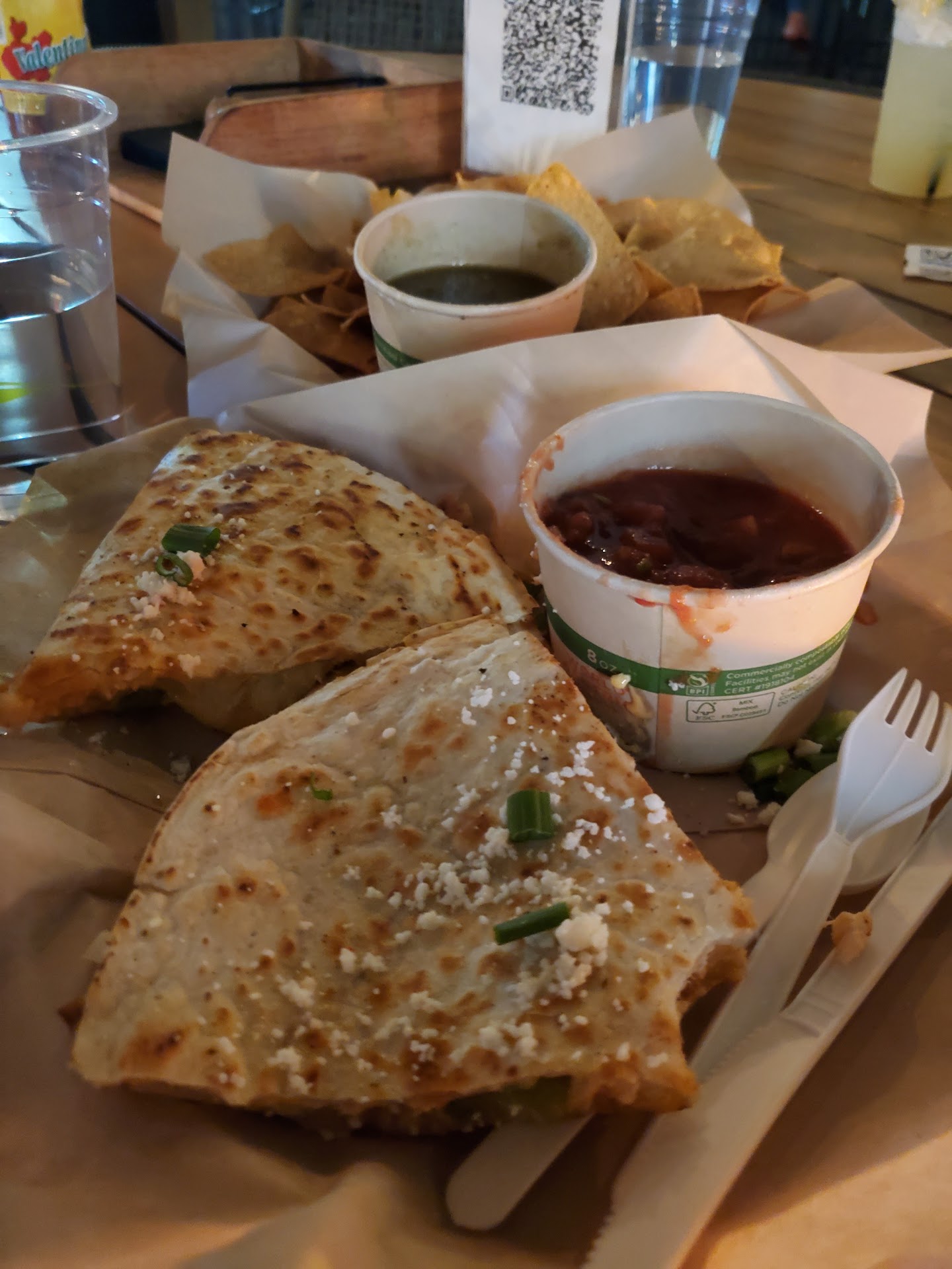 I think the thing I was most surprised by was the Salsas. We ordered the salsa with avocado (I don't remember the proper name and can't locate it online) and they were out of it. So we switched to the Salsa Verde which was definitely average. The salsa that was served with the Quesadilla was also average. (Straight up mild Pace picante out of a jar flavor) In fact both tasted like jarred salsa and lacked serious personality.