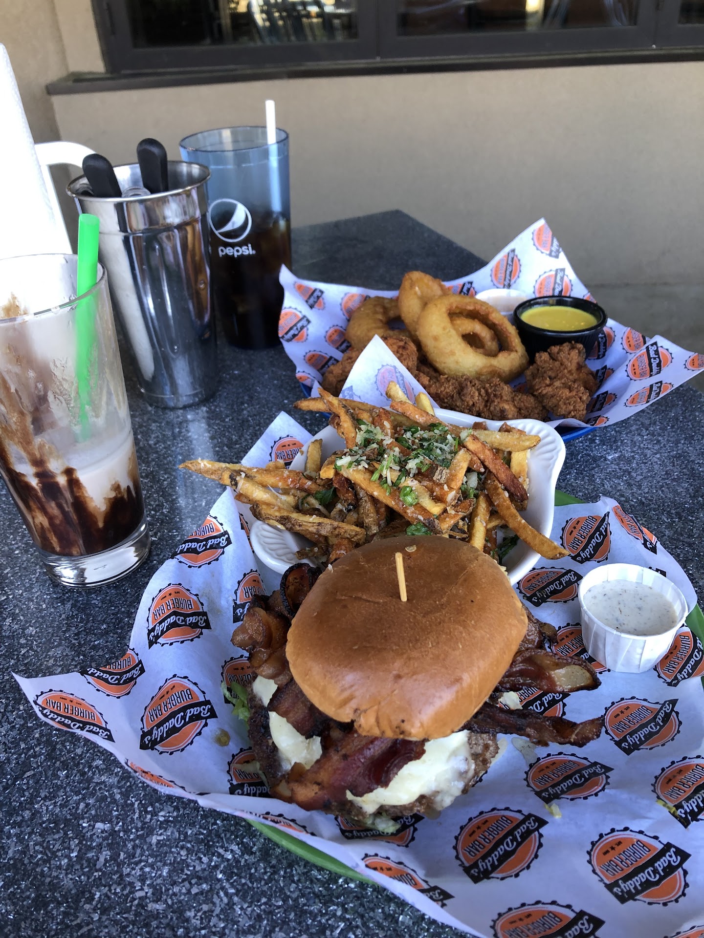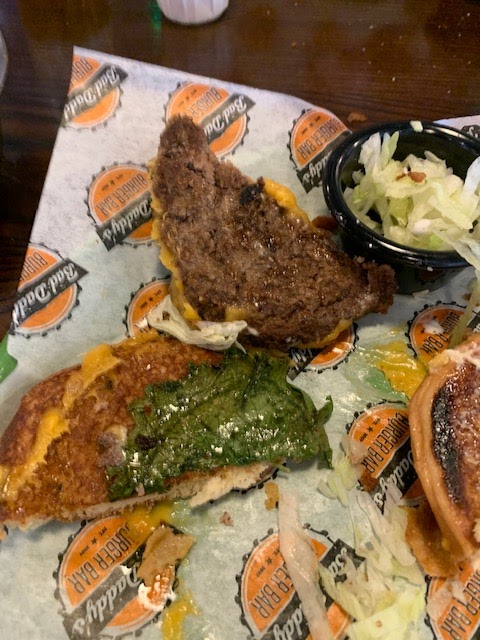 THIS WAS OUR 3RD VISIT TODAY (because when you do eventually get the food, it is good) BUT NOW I HAVE TO WRITE A REVIEW BECAUSE IT IS VERY CRAZY... I want to start at the beginning... So our first visit I want to start with, was for my birthday in March, my 4 coworkers and I all ordered sandwiches and one got a salad, we had 2 teas and 3 waters. After at least 30 minutes, our order came out, one of our 5 had ordered onion rings and there was 3 onion rings! The waiter even noticed and brought out 2 more. Then my one coworker sliced her chicken sandwich and it was frozen and raw. (I SWEAR) so we called over the waiter and then the manager came over and ended up comping her meal and gave us coupon cards of (2)twenty dollars off and (2) ten dollars off our next visit. Ok so the next time we came we called ahead and preordered our food so we would have time during our 1 hour lunch break from our workplace just 2 miles down the road to make sure we'd be back in time. This visit was fine, good food and just a little of a wait and we used our coupons. I tried to call and preorder again about 3 months later and the lady on the phone said they no longer allowed that. So today it was just me and 1 coworker going to lunch and I said, "hey lets go to bad daddy's its just us 2 so it shouldn't be a long wait"... so we get there at about 1:15 the hostess sat us and the waiter came to our table. There were only 3 two top tables sitting at this time. THE PLACE WAS EMPTY AND IT SHOULD HAVE BEEN A WARNING TO US! We go ahead and order drinks and decide to share a slider plate with fries and a side of tater tots and go ahead and order that at same time. He brings our drinks, we wait... 20 mins go by, he brings me a refill of tea, we wait. He comes by 10 minutes later and says our food is coming up... we wait... I tell him to go ahead and bring us our bill and 2 to go cups. The manager "KIM" I asked her name, came to us and said she was told that the sliders had gotten "TOO CRISP" and they were making another plate that was "CHEESING UP" whatever that means. She brings us the food and to go plates and tells us she is taking care of the bill. We eat a few fries and tots and bag it up and leave. So I say all this because THE OWNER OF THIS FRANCHISE IS LOSING MONEY.... Of course it was nice to get free food which I do not mind paying for my food, that truly isn't the point, it just should not be this way... Me and my usual lunch group of 5 are just a small group but imagine if they're giving free food and coupons out to a lot of people? I am writing this because this is a crying shame... AUGUSTA STREET is what is considered (a high dollar area)and it has been prime lunch times we have been to that restaurant. I feel bad because the food really is good but it seems everyone has gotten the message not to eat there because of whatever is going on at this place... oh, also, it wasn't just us, the table behind us when they got up to leave, one of the gentlemen of 3 people said "never again" and the couple at a table a few feet from us were asking where their food was as well. We observed during our time, the folks that were "working" there and it was at least 6 of them including the 2 cooks I saw were playing around, showing stuff to each other on their phones, one of the cooks I saw go to a phone on the wall, (The pregnant hostess I did not see playing around) I am aware there may not be much servers can be doing while waiting for food from the kitchen so I grant them...