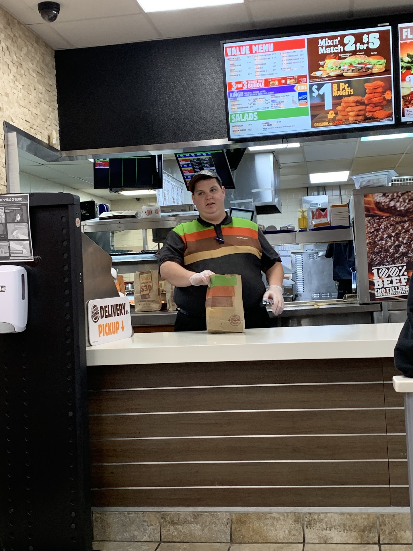 Im giving 3 stars because the customer service and the employees are awesome. They are really busting their butts to get food out but unfortunately BK has terrible pay and it’s hard for them to keep people.