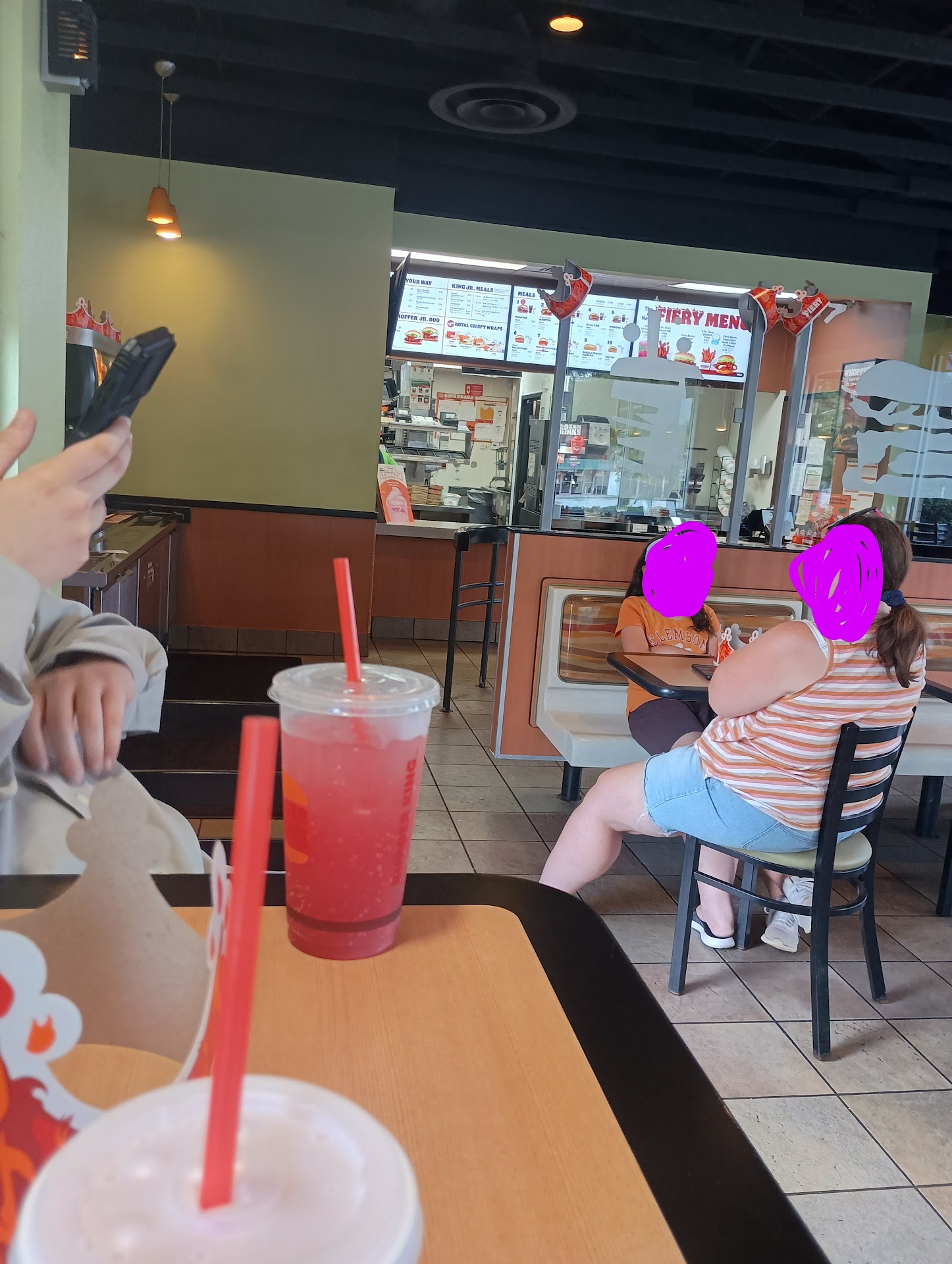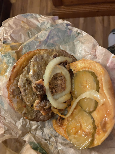 Food was not that great went to the drive-through excited about getting a whopper that I havenât probably had in close to a year go to the restaurant on South Pleasantburg to spout. I need a regular whopper with no pickle on a potato bud very easy then I proceeded to say Iâd like a barbecue brisket whopper with no tomato no mayonnaise no crispy onion with a regular onion on it instead and a potato bun, get all the way home for the order to be wrong all the way back for them still to get it wrong and then on the barbecue brisket proceeded to add three hamburger patties on one sandwich and still get the second one wrong this Burger King one they tried to rectify by putting in some extra fries, but what is fries theyâre more expendable than ever in reality paying for the burger didnât pay $23 for food. It was so disgusting and I was so displeased and so aggravated that I didnât even wanna come back a third round that I just threw everything in the garbage. It was a waste of my stomachâs time, if youâre going to put lettuce tomato to come with kind of method because you know the burger is going to be hot and people need to get from where they are at the restaurant to their house not to look like you have Dale tree on your sandwich or whatever it is that you might have decided to order so Burger King gets one graciously if it wasnât for the fact that they got my sonâs chicken fries two waters and a Tea, right I would have given them a zero and then there was no one in the drive thru or parking lot...