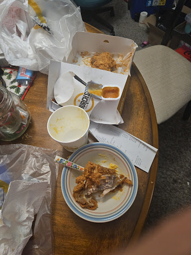 Read moreThis place needs new management! The Manger who she says her name is Ashley is just sad work! I stopped here tonight for 3 pies , a 8pc boneless combo meal and a few more things. Look what they gave me unbelievable!!When I order the pies she said it’ll be a 8 minute wait, no problem I’ll wait but to actually wait for this is ridiculous!!!! Burnt pies that’s not even recognizable!!!! After paying she then say’s we’re out of ice! I’m thinking it’ll be okay not knowing that the drink was going to be hot as tea! I brought the food back I arrived the second time @ 10:22pm they had the nerve to put a black car in the drive through so they can stop taking orders! I go around to the window it was the same person (Ashley) who took my order was also handled money while handing food. She bagged my order up. She was aware of this before handing this to me. When I asked her about the pies she said it’s like that cause of the grease (really) do you want your money back or what with a nasty attitude then when I asked her about the boneless chicken she said we don’t sale the flavor you asked for (mild) so we gave you this! I’m asking what’s the extra stuff in there she said it was okra! Something I didn’t order and is allergic to! I told her if she would have told me this when I order I would of gotten something else! I will be reaching out to corporate cause what I experience tonight is...