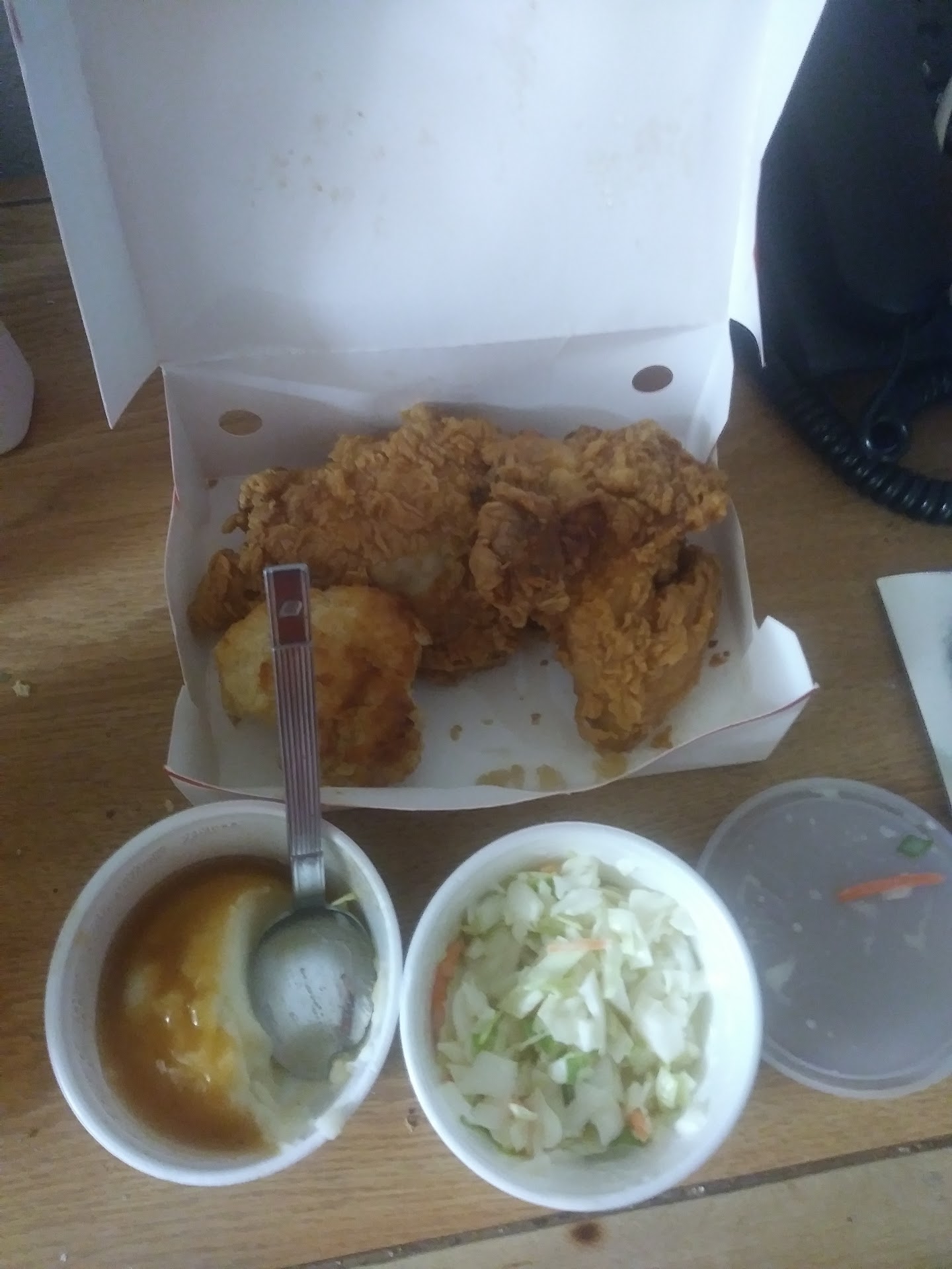 Read moreWould not have given 1 star, if it wasn't needed to proceed of posting a review.. waited 30 minutes in line..4 customers awaiting inside..they had to fry 5 batches of chicken to fulfill orders of awaiting parked car in the Drive-thru. when I was waited on, in which I was ordering the $5.00 Tender deal..2 sides..had to wait another 30 minutes..2 batches of chicken.. due to trying to fulfill people that were awaiting on the inside.. Finally cooking, preparing my order..no tenders ready, only sides available was okra and corn..I'm thinking are you serious.. get home, open my box..4 broken in half tender pieces, tenders were already small..and missing one, whole..okra wasn't fresh, slaw old..which had a W under the bottom, which had to be last Wednesday..I didn't touch my meal..care more about myself/ health and knew better..Floor nasty in lobby..napkins, straws, and don't want to mention kitchen area..I started to take a picture and report them to the health department.. I'm absorbing all the lack of customer service, disarray..I saw a sign on the window stating hiring, all positions.. Please don't just hire, but training is needed..use Chic-Fil-La as a guide !!!!!! I had not visited a Church's in 10 years..will not go back..too much competition to...