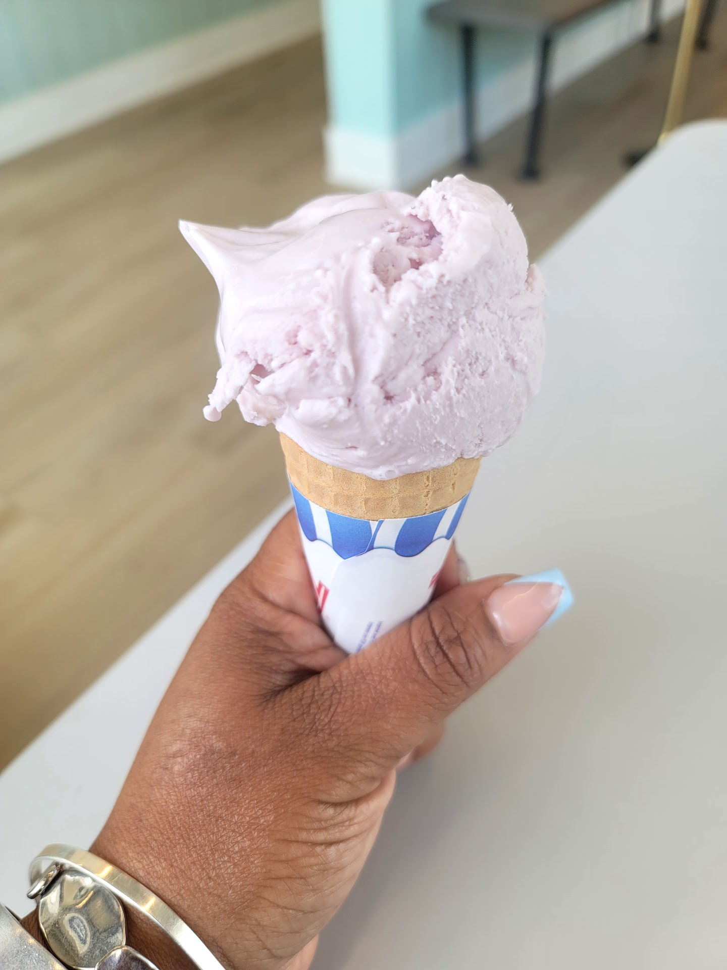 Quality. I had a Honey Lavender, Chocolate Peanut Butter, & Caramel Fudge Brownie ice cream in a freshly made waffle cone (I like to go big or go home). I enjoyed the consistency because it wasnt super airy like the ones you would taste from the freezer section at walmart (yuck). The less airy or "fluffy" it is, typically the easier it is to get a good sense of the actual flavor. The flavors were pretty good and so much so, that returned the next day to get more.
