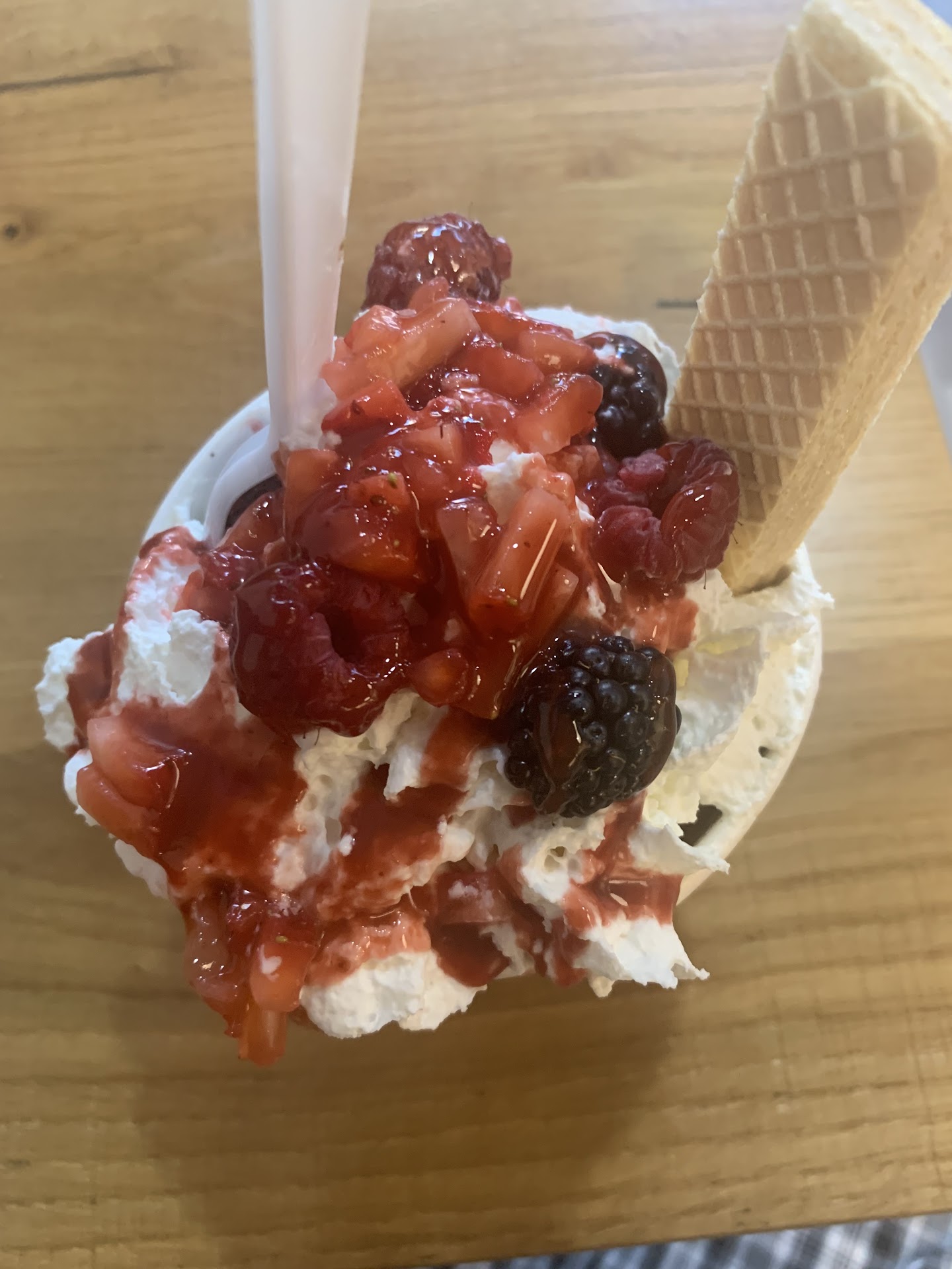 Firstly, I got the berrylicious icecream. I noticed the prices, but it didn’t really click to me that I was paying 8.95 for that small amount of icecream. I mean you can get a whole jug of icecream from the grocery store for that price. Nonetheless, I got that icecream and BOY the whipped cream had such an unappealing taste to it. I came on a Saturday, and they were busy, like very busy. I don’t know if the whipped cream was old or something, but it didn’t even taste like regular whipped cream. It tasted bad. The fruit on my berrylicious icecream… again… it tasted like it was one day away from being spoiled. Just not good quality fruit and whipped cream.