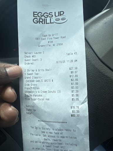Read moreMe and my husband finally decided to stop in over the weekend and try this place for the first time, I have to say I am very pleased and happy we went. We got there and they were very busy but they said the wait would be 15 minutes and we were seated in 10. Not long after we sat down our server Sydnee came right up and got our drink order and she was amazing very sweet and took care of us and made sure everything was perfect. While we waited on our food we enjoyed the atmosphere and how nice the place was. (We loved the ECU wall) all the employees where great everyone worked together and the manager (I believe she was the manager ) was helping so much and you donât see that very often she went around and checked on all the tables and stopped by our table and asked if our food was good and if we enjoyed it and we talked to her for a minute she asked if it was our first visit and offered us some other things to try next time we come. Donât let me forget the kitchen you can see the workers in the back cooking and they stayed busy back there constantly moving and they did great we absolutely loved our food I had the breakfast quesadilla with homefries and my husband had the chicken and waffles and letâs just say there was no leftovers to take home. We will definitely be frequent flyers here and canât wait to try some more items that was recommended to us! So glad to have this place...