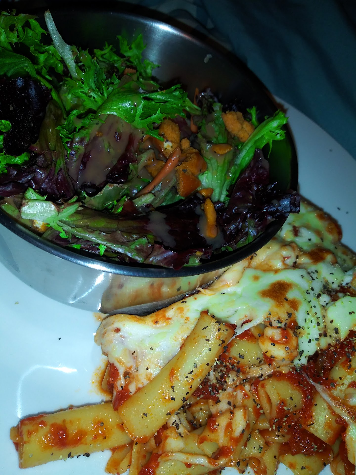 I ordered my favorite meal, the lasagna. Let me just say that I'm used to their lasagna being full, flavorful, and standing on the plate proudly with thick layers. You could slice through it like a thick hunk of meat. THIS was not that lasagna.