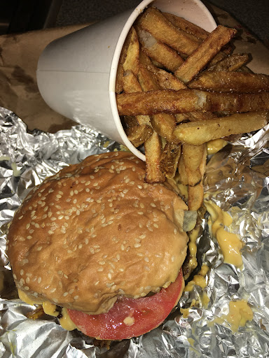 Read moreFive Guys is always delicious. I love how easy it is to customize a burger with a large variety of topping options. The fresh, hand cut fries are the best by far. My issue with Five Guys is the price. It cost over $14 for me to get a little cheeseburger and a little fry. Calling it "little" is deceiving because the burger is big enough and seems like a regular size and the fries are always overflowing in the cup and fall into the bottom of the bag. I understand I'm paying for quality but this still seems a bit much and I only treat myself to Five Guys a few times a year and it's definitely a place I go alone because I'm not going to pay $30-40 to go with my husband and I certainly will not take my whole family of five. My other issue with Five Guys is their online ordering. I order online so I can just walk in and pick up my food then leave. I don't want to have to come inside and wait but that is always the case here and I don't understand. The system asks to let them know when you are on your way. It even tracks your location to know how far away you are. You can tap a button to let them know you are there but it is never ready and waiting for you. You still have to go to the register and let them know you are there/check-in. In the past I was told it's because they want every customer to get their food hot and fresh to maintain the quality, especially the fries. I get it and my food was still hot when I got home and it was indeed delicious BUT I don't like ordering online just to go inside and still have to wait. I would rather just tap the I'm here button and get notification when my food is ready and then go walk inside...