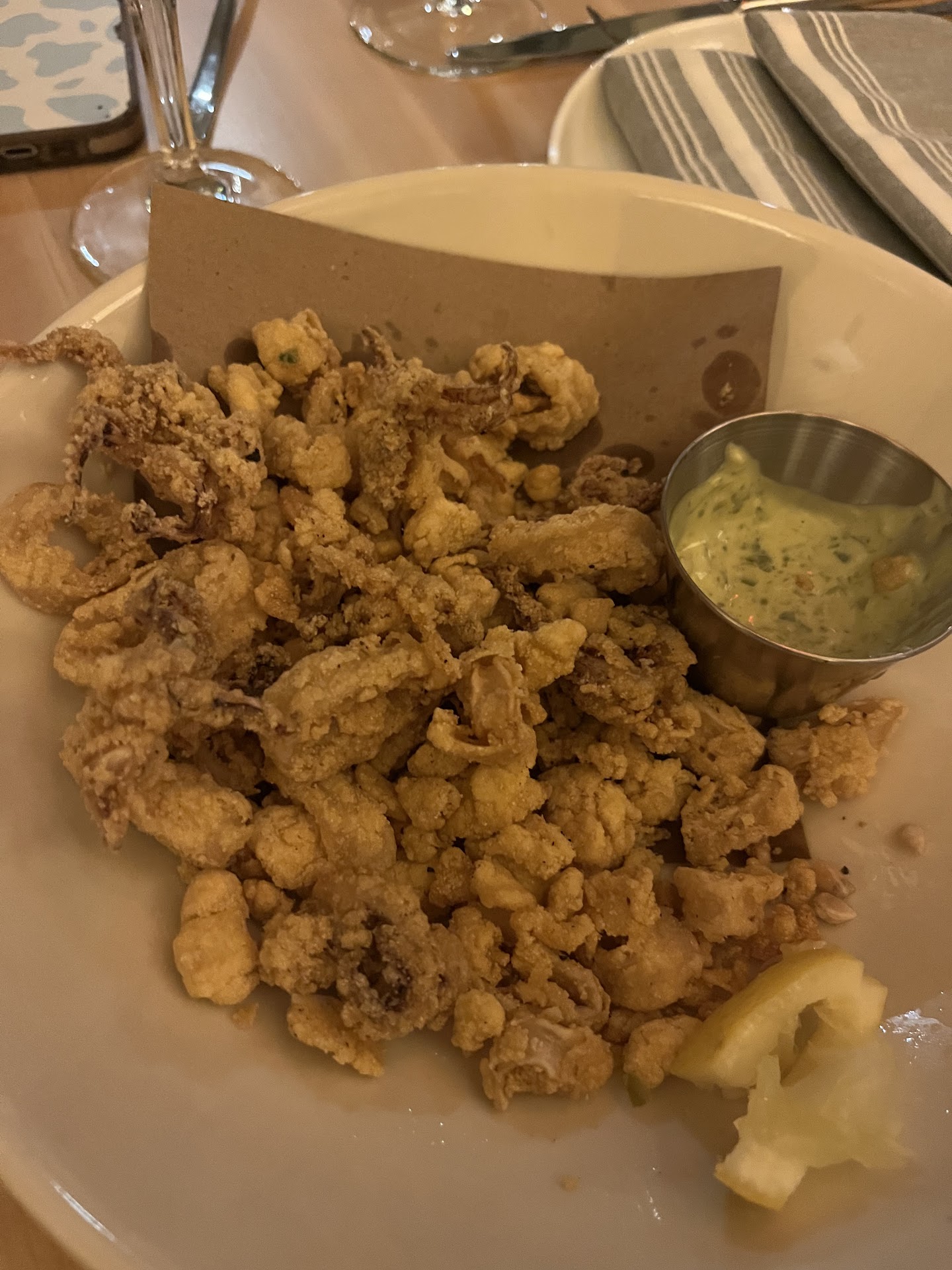 Being a pescatarian/vegetarian limits the entree and pasta choices. So we ordered one Tortelli which husband loved and I ordered a shrimp with pasta and chef was able to change the noodles from squid ink to a flat noodle. I thought the components sounded odd but interesting (fennel and an unusual spice of which I cannot recall) and I found the flavor profile very off-putting and odd, which my husband agreed with. The shrimp however were cooked perfectly and I enjoyed them all.