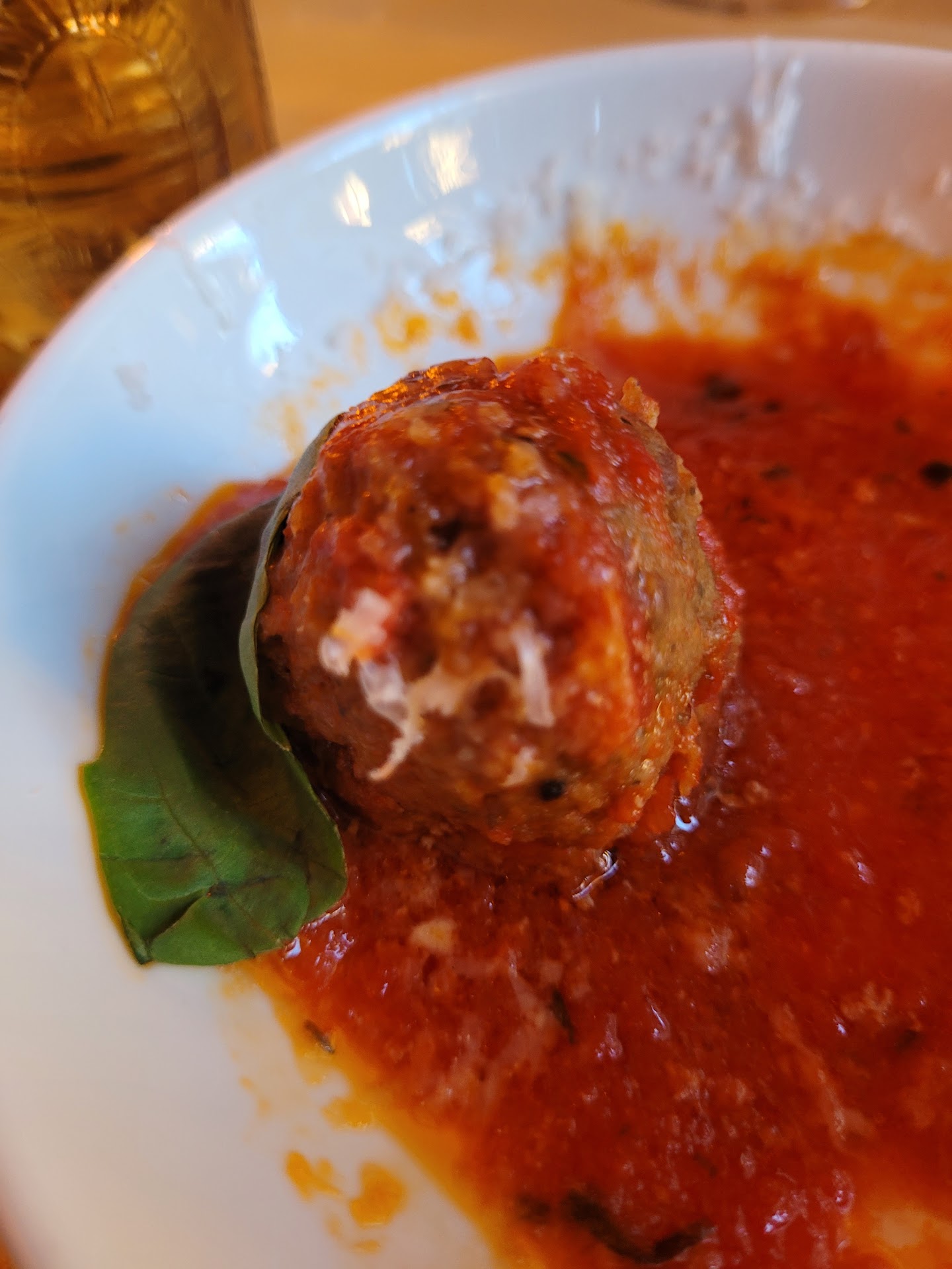One shining moment was the bottle of Brunello Montalcino 2019 which was properly priced at $170.00. We were happy to see a suitable wine to accompany our meal. Also a glass Giordano Gavi was lovely!