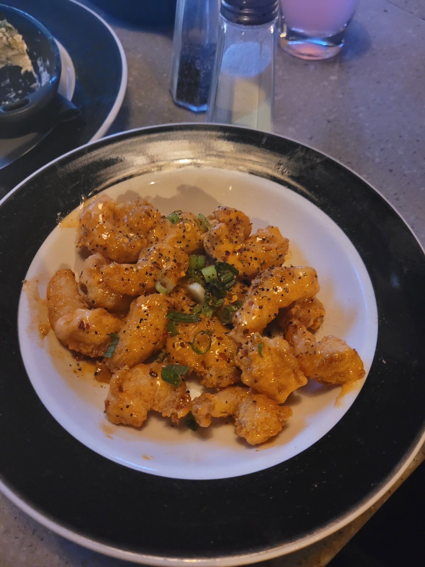 Read moreWent here on a week night and had an ok experience. I love the roof top....such amazing views, but the service is bad enough to make you never want to return. It was not at all busy and as we sat at the roof top bar it took all of 15 minutes to be acknowledged ( and there were 2 different people behind the bar after we sat with only 1 other customer sitting down) . The bartenders did everthing but say hi and bring a water over. I asked my bartender if they could make something similar to a strawberry basil smash, she said yes and made a passion fruit one instead. It was reallllyyyy good. I ordered the spinach artichoke dip and the crispy potatoes without the chorizo to start. The spinach dip was awful. It literally just tasted like cream cheese and nothing else. The portion was a good size and the pita chips were warm...but it just seemed as if I was eating spoonfuls of cream cheese straight out of the fridge. The potatoes were soooo good. They were crispy and I loved the aioli. My partner ordered wings & got them korean flavored. He loved them & I only tried the sauce and it was really good ( he ordered a double shot after I ordered my drink and it took him a long time to get his drink as well). I ordered the sweet and spicy shrimp and again, it took forever but I would definitely order those take out because it was really good & a great dup of like a bang bang shrimp. Our server was kind, but it was just a slow slow night. Even with other servers coming in and out of the bar. They also would disappear fort large chunks of time. Would try other food, but probably only to go instead...