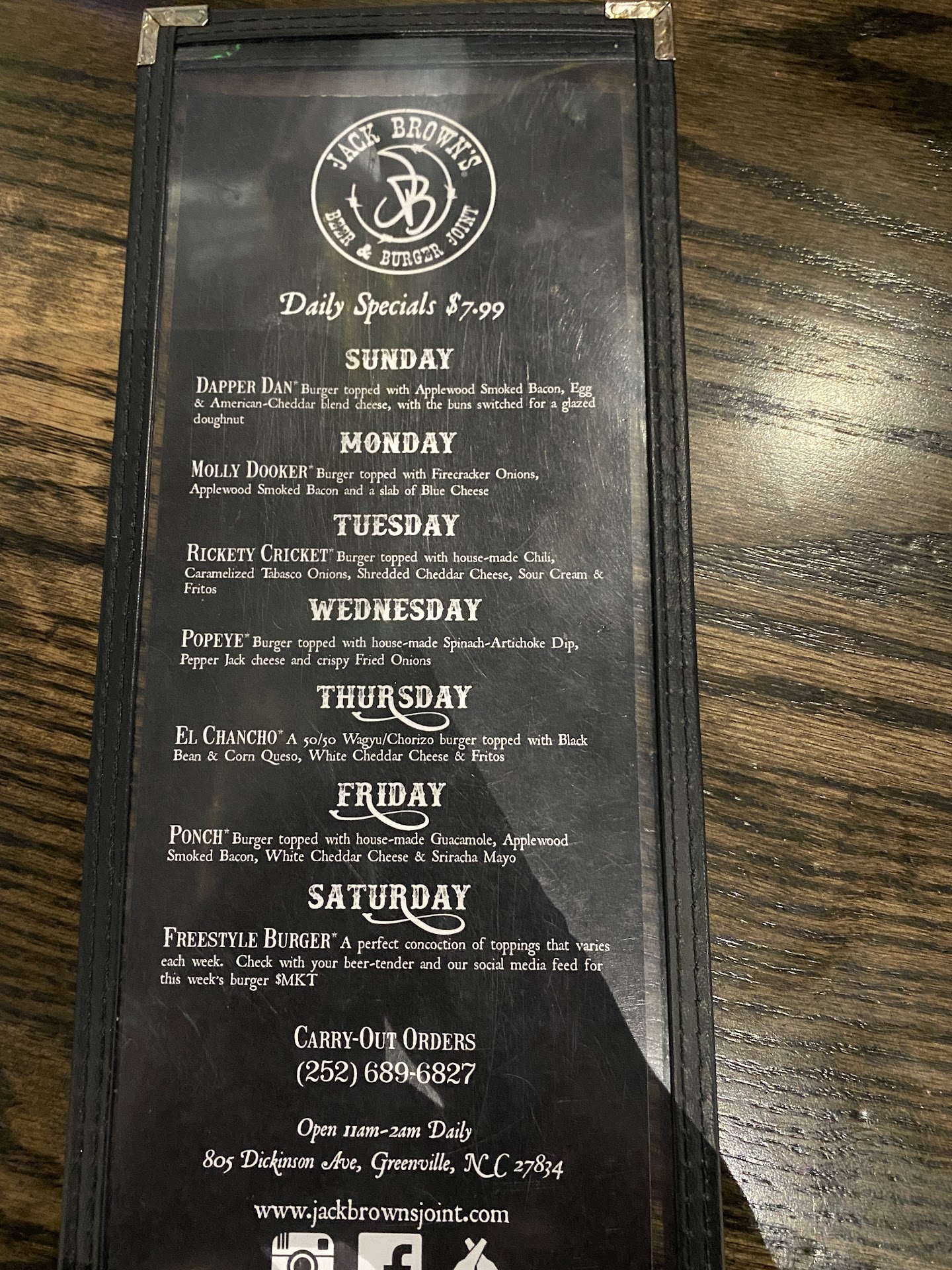 Read moreWent for a ride on the bike today and ended up in Greenville and heard that this place had a pretty damn good burger. The walls are filled with dollar bills and things written all over them. The ceiling has an upside down Xmas tree and women's lingerie hanging all over 🤣 This is definitely a college bar. We went in the middle of the day, so it was SUPER slow. I think it was us and one other table. Service was lacking, but the food was indeed awesome. I got the Elvis burger and fries. The burger was cooked super well and tasted awesome. That particular burger had peanut butter on it, which is something I'd never had before on a burger. Definitely added something to it and was super good. The fries were alright, and their house sauce is heavy mayo based and not a lot of other flavor added to it.
