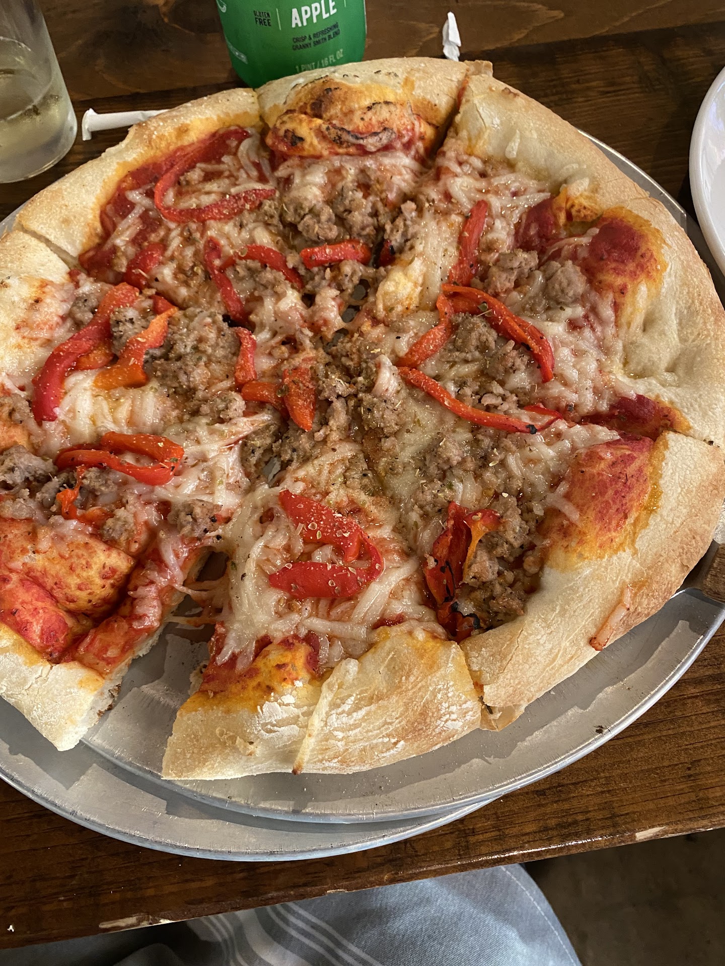 Kitchen sink is one of my wife and I‘s most favorite places to grab a delicious meal on a Monday Tuesday Wednesday or really any day of the week. One of the most delightful surprises I received, was there vegan cheese for their pizza. Don’t be deceived in thinking that it is a pizza establishment, they provide all the necessities a patron would require two entrances taste buds and fill his belly, from burgers to chops to steaks to pizza, there are plenty of options. The thing I like most about the vegan cheese is its ability to melt. It blends nicely with their crust, which is an aerie crust almost Joey, and has a sweet tomato sauce and your choice of topping. Service has also been sublime on a consistent basis. If I were to offer one note of criticism, it would be the parking situation. Often times the parking lot is full… Which is fine… But it’s one of those weird parking lots where the spaces are like slanted and so you can only technically enter one way and then you can’t park both ways and then it’s kind of tight and then you have to do like a roundabout thing, I realize this is futile to discuss, but nevertheless, I guess I’m just saying I wish they made parking spaces that were straight versus the slanted kind, not necessarily that kitchen sinks are bad parking spaces, but if you’re gonna have the slanted spaces, I think there needs to be a little more space between each because if I were a heavier fellow, parentheses I’m 200 pounds, when I pull into the space it can be like I’m trying to slither out between two cars. Also there’s a street along the side of it which this is kind of like a particular Greenville thing, but I never know if I can park along the side of the street or if I’m gonna get towed and I guess it just comes from having lived in other cities where you will get towed pretty much no matter wherever you park, but it be nice to know if I will or will not get towed. And also on the note of parking and I don’t have a solution for this right by no means and being a complainer but when you’re driving down Lauren‘s kitchen sink is going to sneak up on you quick…...