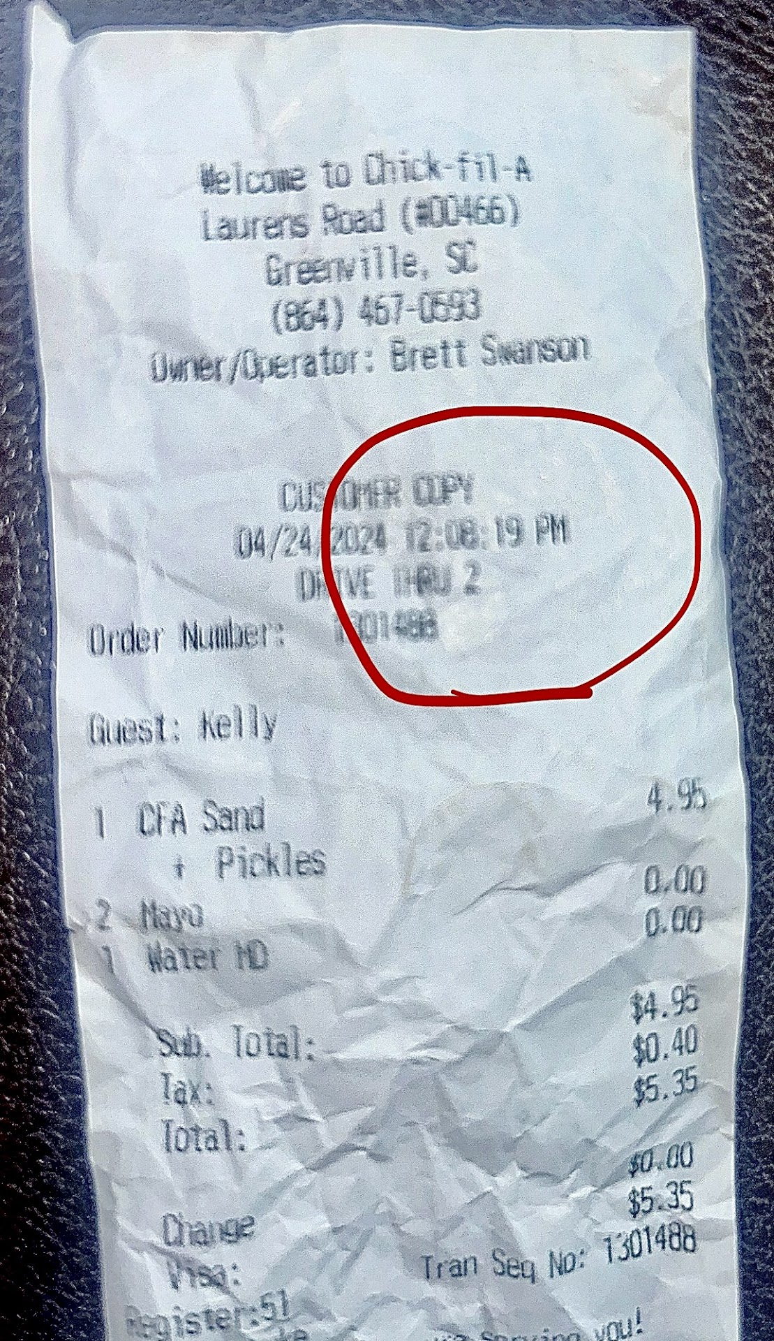 Read moreI work at Toyota of Greenville, for the past few months, i stop at this location EVERYDAY before I go to work, the 1st couple of weeks, the service was fast and my food was correct, but for the past month, my food has been wrong 2-4 days out of a week. I called and spoke with a team lead on Tuesday, got a free meal on yesterday just to go back this morning and my order is wrong and I know what everybody is thinking, "I should check the bag" but who wants to hold up a line checking food that is suppose to be checked multiple times before being handed to the customer and I use to work for a chick fil a chain and we checked our bags 3 times before going out the window!
