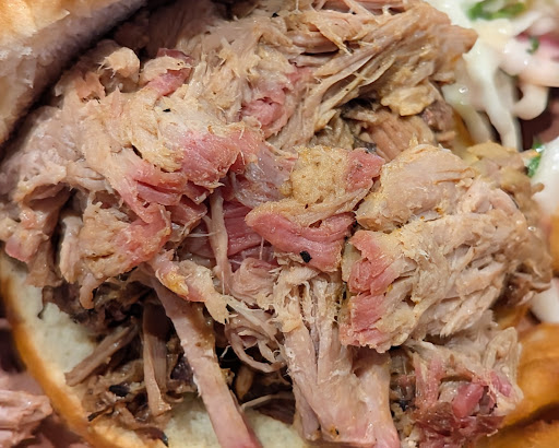 This won't be a surprise when I say “you know what I'm here for.” I separated each of the 3 meats from the sandwich so that I could taste them solo. The BBQ Pulled Pork had noticeable smoke in it and bark. The flavor was good but lacking in intensity, very mild and a bit on the dry side. Fortunately there was sauce to the rescue!