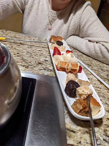 Finally, we indulged in the dessert fondue, and it was the perfect ending to a perfect meal. The chocolate was rich and velvety, and the assortment of dippable treats was a chocolate lover's dream come true. Wendy ensured that our chocolate fondue stayed warm and smooth throughout, allowing us to savor every last bite.