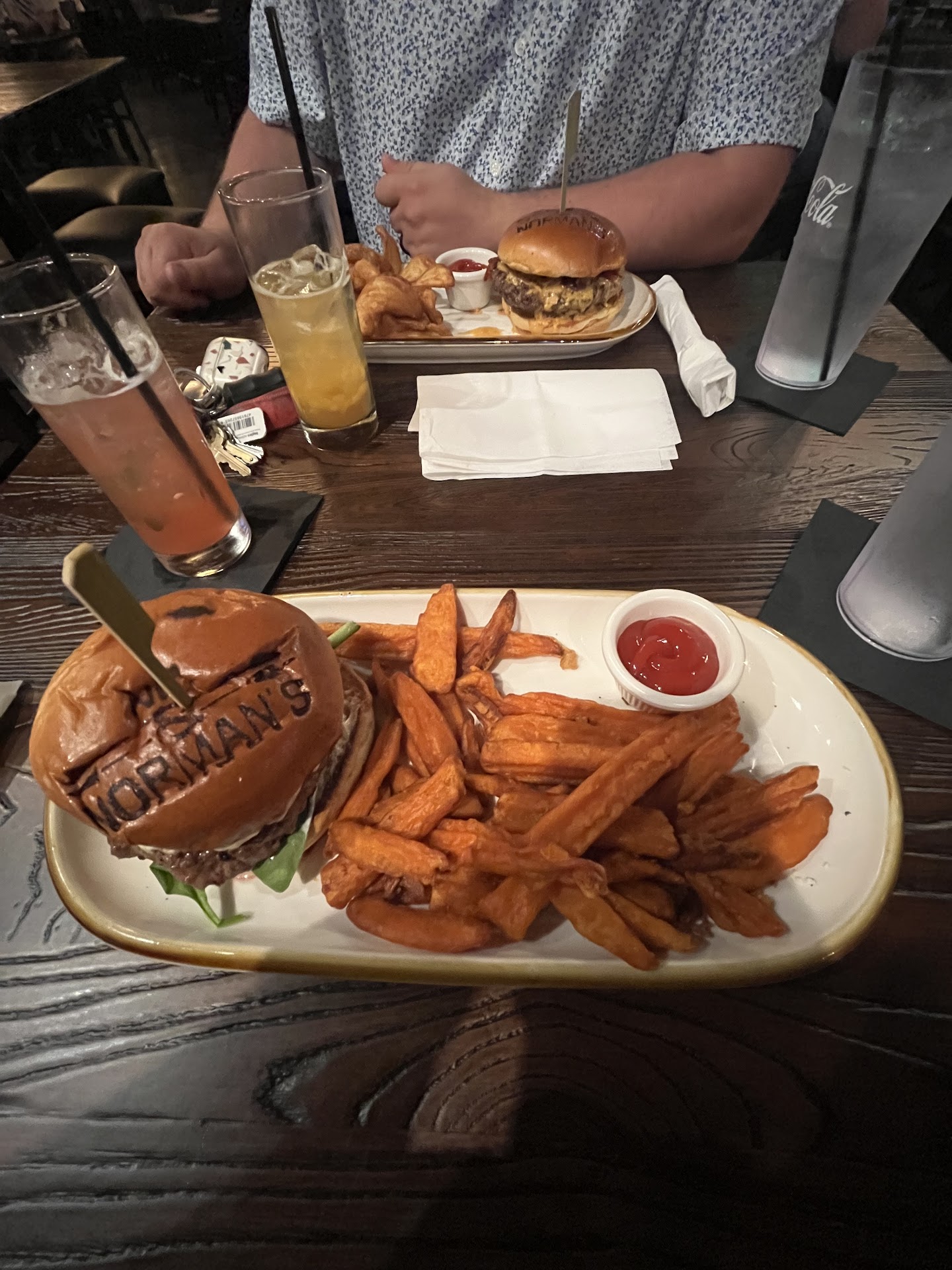 Read moreThe overall atmosphere was very nice and aesthetically pleasing. The hosts were very kind and helpful. Our server was very nice and efficient. I had the Spiked Raspberry lemonade that was very refreshing and had house infused raspberry. My fiancé tried their Peach Lemonade that was tasty, as well. We splurged on the Fried Mozzerella appetizer that came out quickly and was amazing. For our dinner options, my fiancé ordered the Pimento Bacon burger with sidewinders, which was delicious. I ordered the Turkey Avocado burger with sweet potato fries. The fries were perfectly crisp and tasted great. My turkey burger however was bleeding all over the plate and when I cut into it, the middle was cold, mushy, and very rare. I was hesitant to send it back, but did because I did not want to spend $16 on a burger that would make me sick. The server understood immediately and took it back. We were then approached by a manager who informed me their burgers were just cooked that way and I should have been previously informed because overcooking it would make it “too tough”. But they said they would prepare me another burger that was cooked slightly more. The server approached afterwards and said he was under the impression we had a Lamb Burger and that’s why he said it should be cooked that way. She said she would talk to him and bring my burger out soon. The manager never came back over after the encounter and I received my remake later. This encounter and the manager’s reaction made the entire dining experience afterwards feel very awkward and uncomfortable, which ultimately soured the evening. I know there may have been a miscommunication about the type of meat, but turkey burgers should never be served at an internal temperature less than 165 degrees. This tells me someone is dropping the ball when it comes to quality control. However, I understand mistakes happen and maybe this is just a hiccup due to them still being a new business. We plan on returning in the future to try again so we’re looking forward to seeing how...