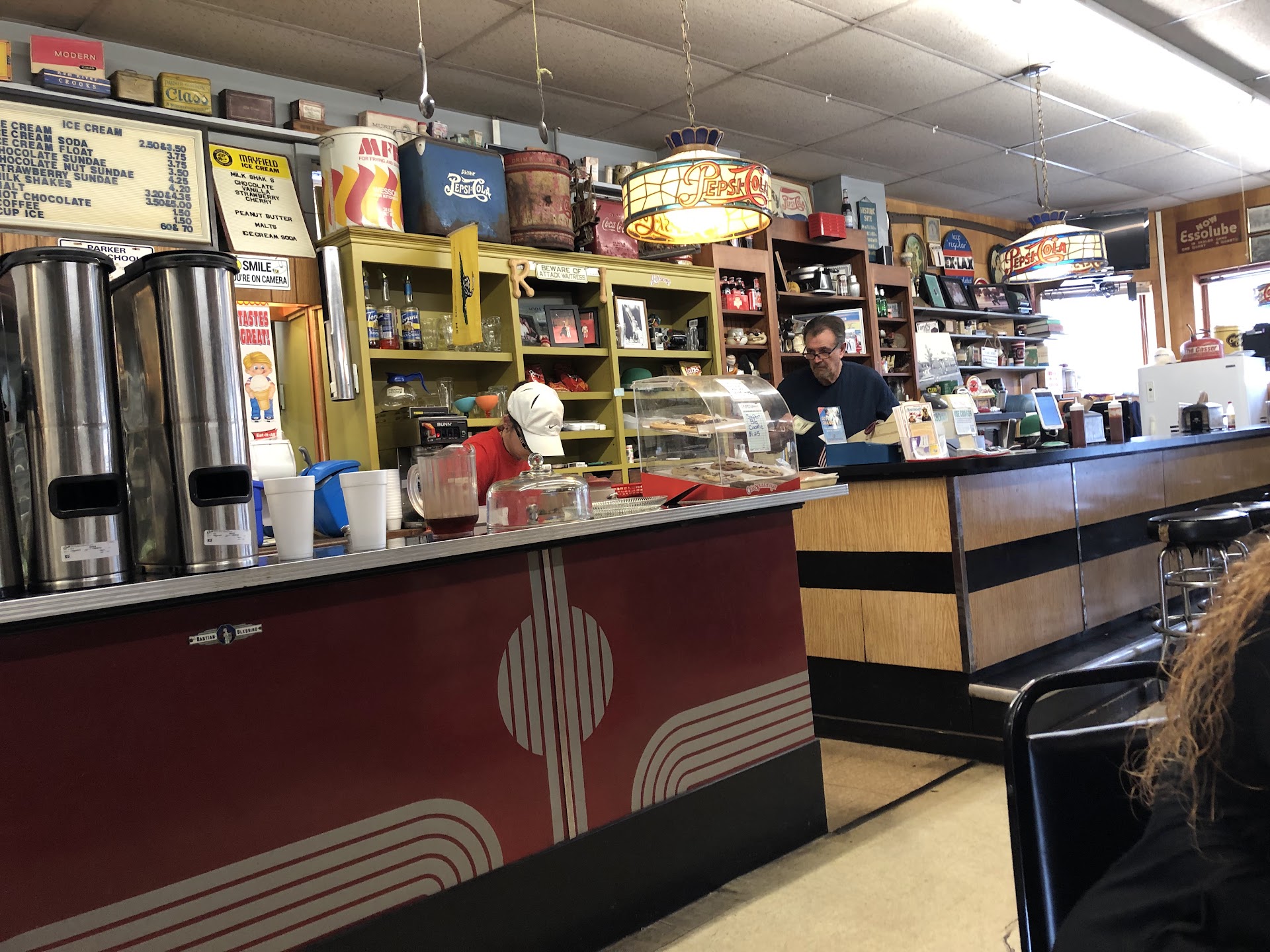 Back again after a couple of years and hit on a Tuesday, but not just ANY Tuesday. It’s the 1st Tuesday of the month, and Parker High Alumni lunch day. Packed house even at 11:45, with most of the folks already lingering over styrofoam cups. While our greeting at the counter rather bluntly was that we wouldn’t find any table seats, fortunately our server Allie (who likely hoped for someone ordering something) scooped us up and ushered us to the last table open in the second room. Got our drink orders promptly and left paper menus, getting back shortly to take our order. My colleagues both had salads, generous helpings on styrofoam plates- the Large Chef (9$) and Large Philly Bleu ($9, and like a Philly Classic w/ no bread)- some dressings are house made, most aren’t, just ask. They finished them all, no argument there. I went more traditional soda shop with the Cheeseburger Deluxe ($8.25, add $1.25 for half fries/ half rings), and unfortunately, it really wasn’t much above average. A standard patty done on a griddle with a plain bun, though the condiments ordered were the ones received. But, how much is there to complain about when you are serenaded at 12:40 by a recorded version of the Parker High Alma Mater with the whole restaurant singing along? Or, all during lunch you can gaze at one of the most eclectic selections of beer and wild animal wall art anywhere? Or honor the lost customers commemorative nameplates? Certainly worth a trip, but if you are wearing a mask, be aware you’re likely the only one doing that...