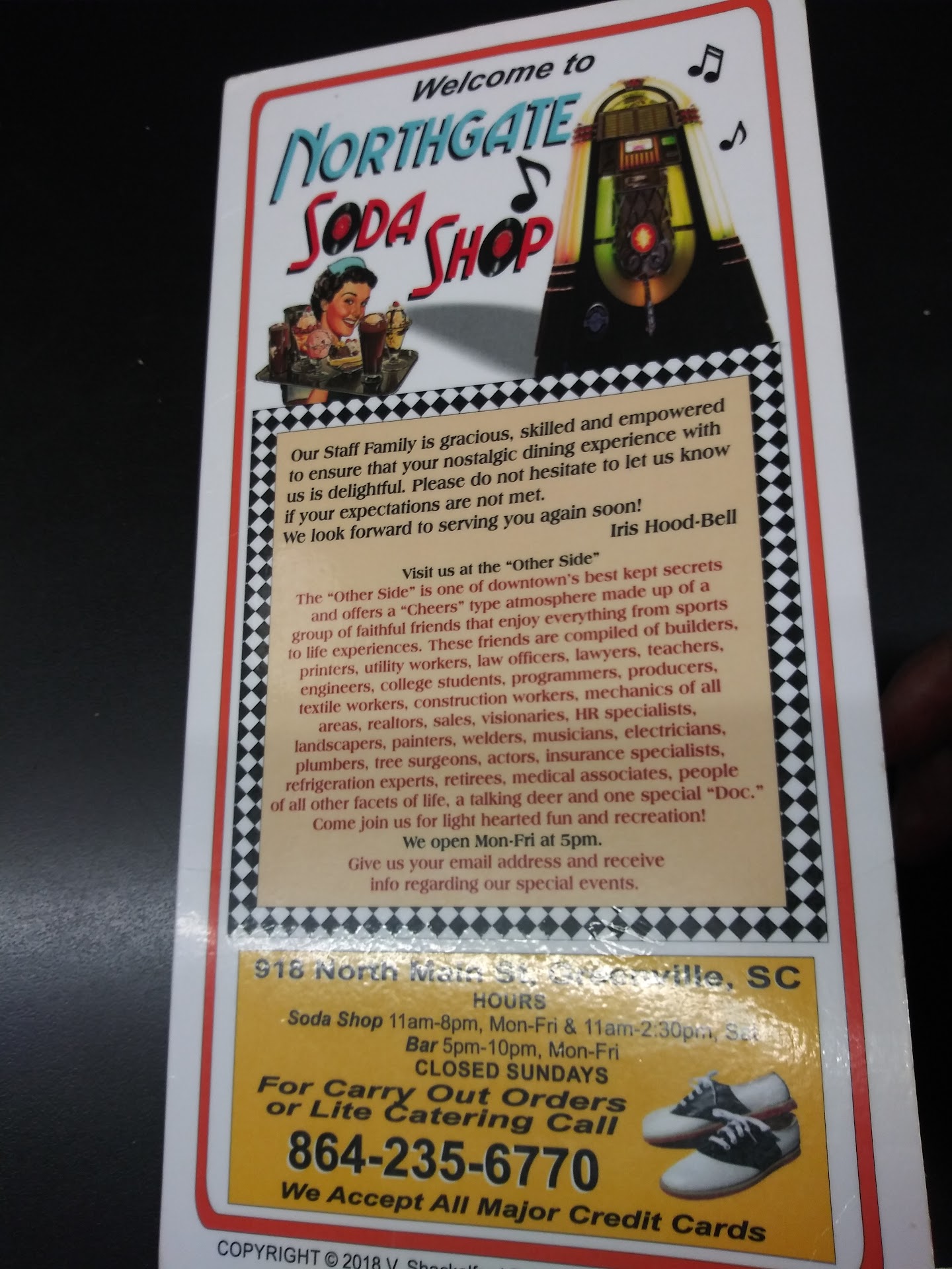 Read moreSo I pull into this place called the soda shop. Parking near parking area which is not very well design but you get the concept. Park walk inside when you walk inside you kind of get this old 90s feeling it's not very Multicultural I should say but it's cool. I was immediately greeted and helped I do order everything to go just so I can get containers in plastic ware but I did eat in. I ordered the special which is the pimento cheese burger play what's that supposed to be famous for. They cooked it to order didn't wait very long wait time was very minimal I could say. When I receive my order everything was fresh just made hot I did get a pimento cheese burger french fries and coleslaw fries were good cheeseburger was good taste anything special come taste like a regular cheeseburger to me the vegetables on their refresh the lettuce and tomatoes bun was toasted the coleslaw not so much I was not that great at all but he did bring out these onion rings for taste test and I must say these onion rings were heaven like these are the best onion rings I've ever had ever and I don't even like onion rings so those are highly recommended that's kind of what you see a picture of a half-eaten onion ring so yes please eat here...