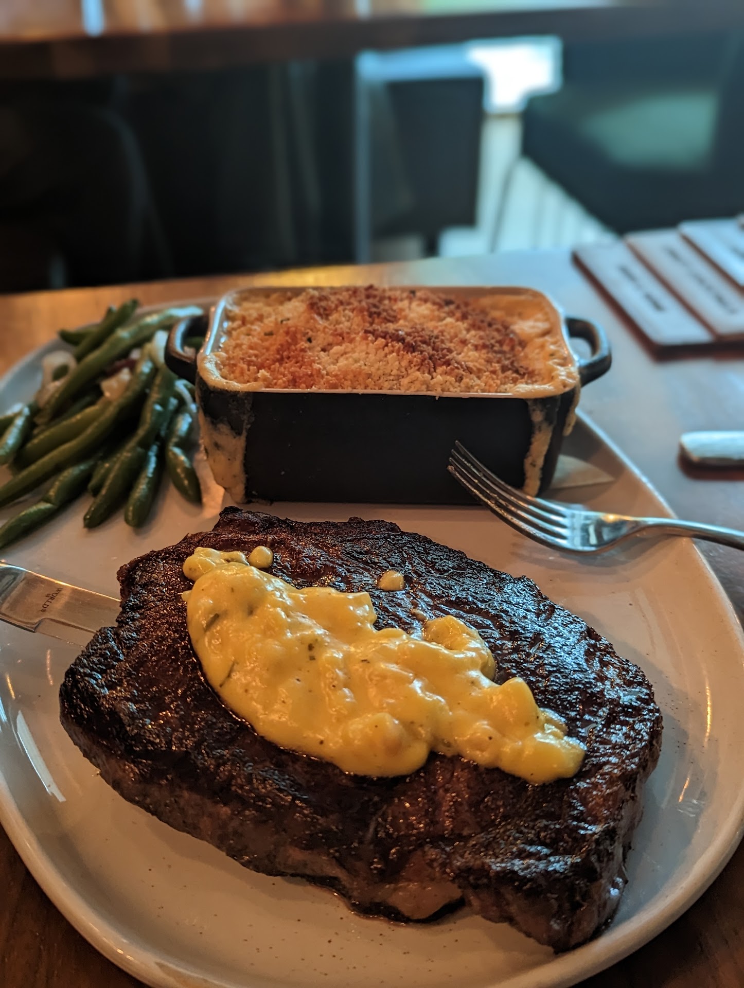 Ā Ā Ā Read moreIāve found myself preferring the hotel restaurant scene lately. This place was no exception! The seating was cozy and calm yet active and vibrant at the same time. It was cold out so Iām assuming thatās why it wasnāt very busy for a Friday night but, besides the bar area, we were the only table. Our server was friendly and just attentive enough to not be overbearing. We started with the truffle fries. They were good but not outstanding. I prefer shoestring truffle fries and these were regular size fries. They also could have used a bit more cheese. To drink I had the Oak and Honey old fashioned. The cocktail menu was creative and typically priced. I ordered the fried chicken with Brussels sprouts and beans. I didnāt realize when I ordered that it was gluten free and was pleasantly surprised at the flavor. Itās incredibly hard to find gluten free fried chicken so Iām definitely highlighting this point! Our server said that the menu is rotating but they always have a fried chicken option and itās always gluten free. Oh, and ingredients are sourced locallyāanother plus! My husband ordered the carbonara. He had a craving for that dish and it hit the spot. Hereās my only request (and Iām going to start adding it to every review): PLEASE add one vegan dish to every menu. A simple vegetable plate or a grain bowl. It doesnāt have to be fancy. This is needed especially in a hotel restaurant! I appreciate the cauliflower...