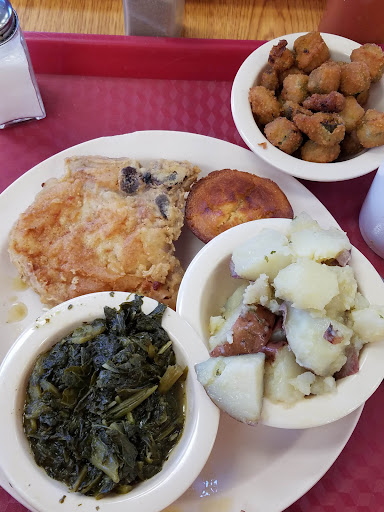 Why I waited 12 years since first hearing of OJ's, I'll never know. Very positive first experience at this restaurant. If I could give 6 stars to their service, I would. From the time I brought in my elderly mother who struggled with her walker, to the time we left, we were treated like honored guest. The staff aided my mother to the table, then realized the table had a wonky leg, warned us, and helped us shift to another table. They even went so far as to hold the seat for Mom and tuck her in. They spotted that I'd forgotten to ask for tartar sauce for my fish, and offered to bring some. They know their stuff when it comes to greens, and asked if I'd like any of a handful of vinegar types they had for topping those greens. We were asked often if they could provide anything, and they kept the beverages topped off. When Mom rose to go, I noticed behind her one of the staff loaded down with trays and plates. I tried to wave Mom off so the worker wouldn't have to wait for Mom's slow movement, but she kindly offered to let Mom go first. We were not the only ones I noticed being treated well. Another with a walker entered the restaurant, and I observed the staff treating her with great care as well, then holding the doors when she was leaving. One other note: the cafeteria-style plastic trays were squeaky clean. You could have eaten the meal off of them. I'm used elsewhere to seeing "ah, it will pass inspection". I've eaten at restaurants all over the Upstate, and frequently, and I cannot recall the last time service was this good elsewhere.