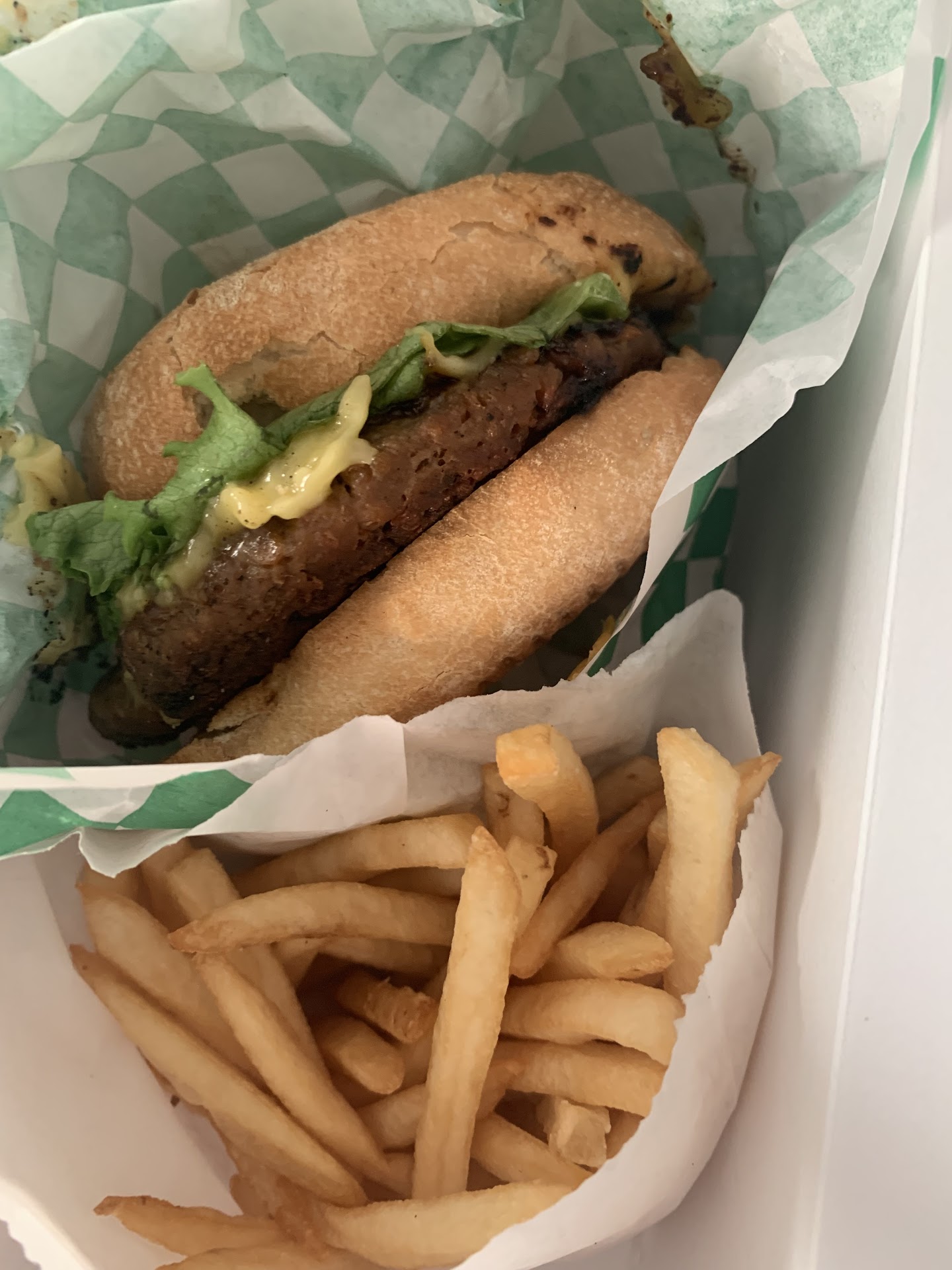 I went back to patiently explain our frustration and waited for them to make another veggie burger so she could eat. While waiting I witnessed at least three other similar instances of orders being shouted out and comically people who had been waiting longer kept getting skipped.