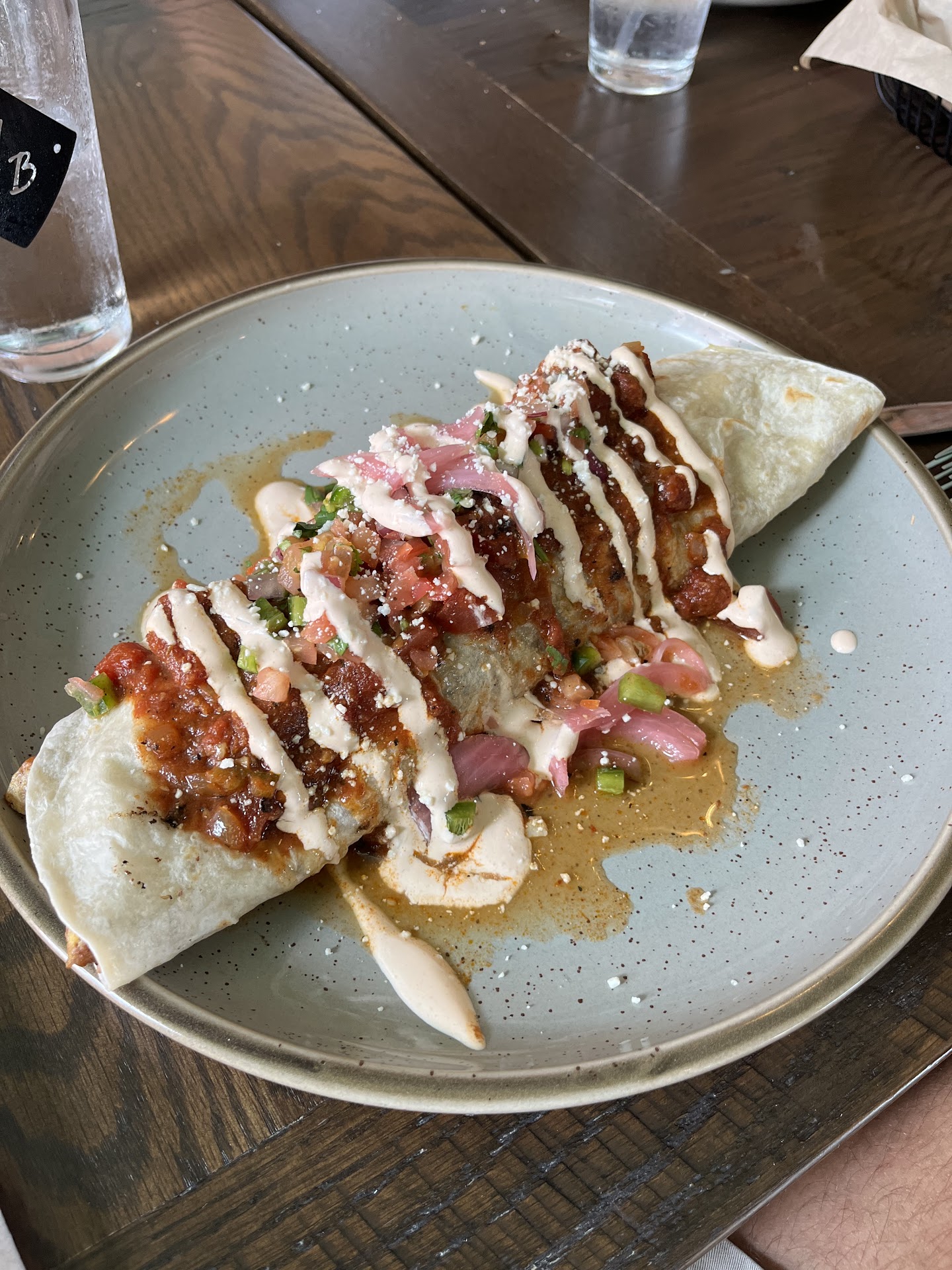 We had the chorizo empanadas and chicken tinga nachos as appetizers. I LOVED the nachos. Our server Ashlyn was amazing! She was very friendly and welcoming. She knew the menu well and was able to make recommendations based on what we told her we liked. Everything she recommended was fantastic. We were torn when choosing between a few things. The nachos were her recommendation and we loved them. It was also alot bigger than we expected and well worth the price. We also got the Korean Fried Chicken tacos and the Chicken Flautas. I was so full that I only tasted these two but they were really good. The korean tacos were full of flavor! I wasn't expecting it. They were sweet and spicy and so filled that stuff was falling out when I took my first bite. I liked the chicken flautas but they weren't as flavorful as the Korean tacos but that was to be expected. It was also a big portion, the two flautas were on top of rice and beans.