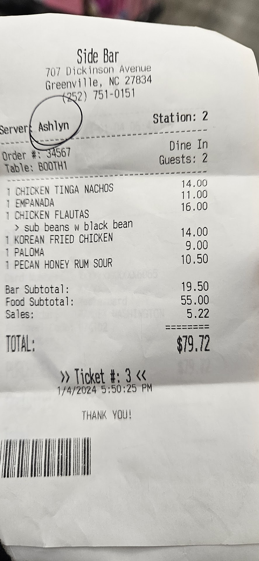 If you’re craving tacos that go beyond the basics, Side Bar is a must-visit. The Honey Chipotle Fried Shrimp Tacos alone make it worth the stop, but it’s the combination of flavors, great service, and inviting atmosphere that will make you...