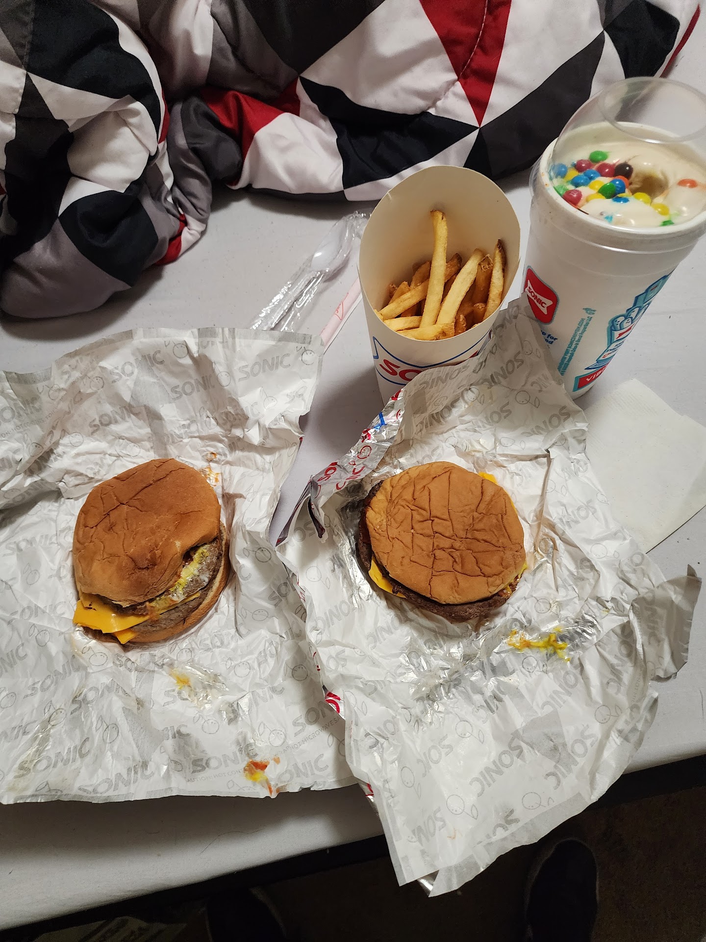 Ā Ā Ā Read moreI normally never leave reviews on google but this sonic amazed me last night. I came with a friend of mine around 10 last night after we both just worked a 13 hour shift. We order a bunch of food which included two philly cheesesteaks. I managed to spill my entire sandwich in my lap and in my car. Needless to say I was covered in ranch as well. I clicked the button to order some more napkins and my carhop (I believe Aaliyah was her name) came out saw me wearing my dinner and immediately went to ask if she could make me another one. A few moments later Jesse came out and talked to me for a while and offered to make me a new sandwich himself. On them. After working a 13 hour shift these two truly captured my heart by taking really good care of me and made my night. Being a former Sonic employee at a different location this kind of service was truly amazing. I know this was a long review but these staff at this location are doing a fantastic job and never fail to satisfy. Definitely go check them out if you have not before.