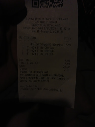 Read moreI got 3 subs 1 meatball 1 chicken 1 steak the meatball sub was slacked in marinara outside the sub the chicken sub had lettuce on the bread and ranch all over the bread and the steak sub was squished all together like someone squeezed the middle and the toppings were out if sub almost I have ate at this location multiple times and it’s always good food but this time it was messy but...