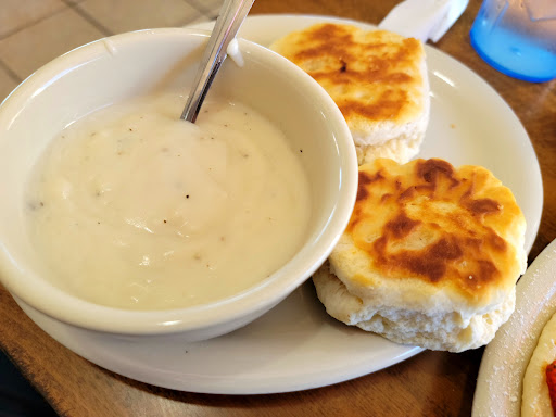 The chicken fried steak was cooked to perfection, boasting a golden and crispy exterior with a pleasing texture. The biscuits were light and fluffy, featuring a slightly grilled or broiled golden brown top. The pancakes were incredibly airy and delectable, leaving me thoroughly impressed.