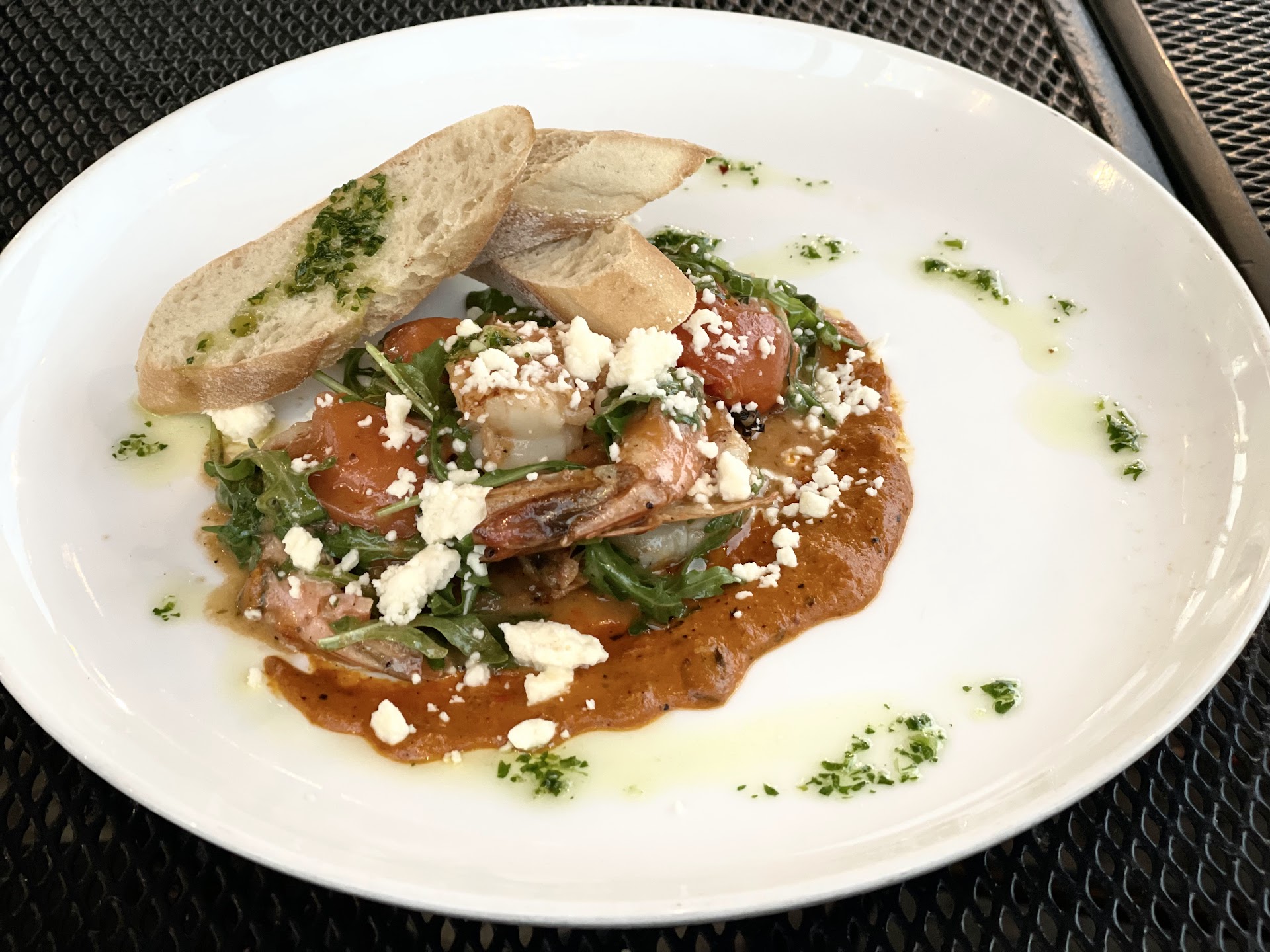 Finally the Garlic Shrimp, get them. For such a simple dish the flavors were built into this dish so well. I really enjoyed the garlic oil which definitely shouldnāt be skipped. Everything on this plate just makes sense together. The shrimp were beautifully cooked paired with the tomatoes and feta itās so simple but there is nothing simple about the flavors.