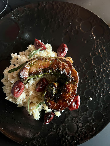 đ Main Entrees: We all shared the Lamb (pinwheel style with tart cherries), Chicken Thighs (charred exterior with beautiful figs and green wheat), Veal Ghormeh Sabzi (perfectly tender with rice and beans), Potato (thinly sliced, stacked potatoes marrinated overnight, then fried giving a crunchy exterior and an interior brusting flavor), and Zucchini (with incredible carrot frites and whipped feta). The zucchini was the table favorite followed closely by the veal. The chicken and lamb were both slightly overcooked, but had great flavor.