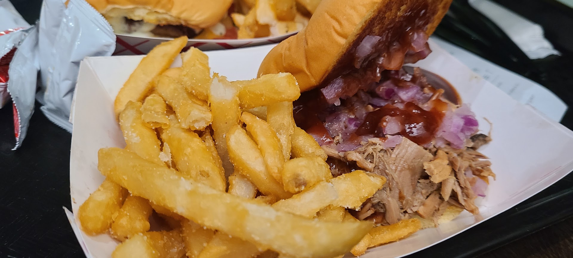 Read moreThis place was a random stop without searching, and it turned out to be amazing. Passed by this place on the way to work and kept it in rhe back of my head. On the way back from work I couldnt help it and pulled in. Lol had the smash burger and the cuban pork bbq sandwich both with fries. Both were excellent, the pulled pork was really flavorful and the onion and bbq sauce tied it all together. For not being a bbq joint this sandwhich produces like a highly rated bbq spot! The burger was the absolute highlight of the meal we devoured it without even talking, just nodding at each other, saying, without saying, that it was incredible! The fries that came with it were also very very good. After clearing our throats and being able to talk, we both agreed that it was one of the best burgers we have had, and that a big part of the reason is they know how to properly season every thing! Evenly seasoned. Well seasoned. Pure juicy flavor! They have a cool upstairs seating area so there is plenty of space for everyone when this place is packed. A couple of small gripes, i asked the cashier what was the go to items, what does eveyone usually get? The young kid looked at me blank and then said very unsure of himself, i dont know? Ok fair enough. Needs a little work on the customer service side, glad hes working and doing his part, but management this young man needs some training. The lady standing behind him just stood there blank as well with no response. My second gripe was that the food was soo good we decided to ordee thier chicken sandwhich, we got it breaded and spicy hot. This hot sauce was not good. I understand this place is "tropical" but that hot sauce on the sandwhich was terrible. After having such amazing food and then being blown away by the awful flavor of the hot sauce really took me by surprise. I will still give this place 5 stars as the burger was on another level and the fries and pork sandwich were...