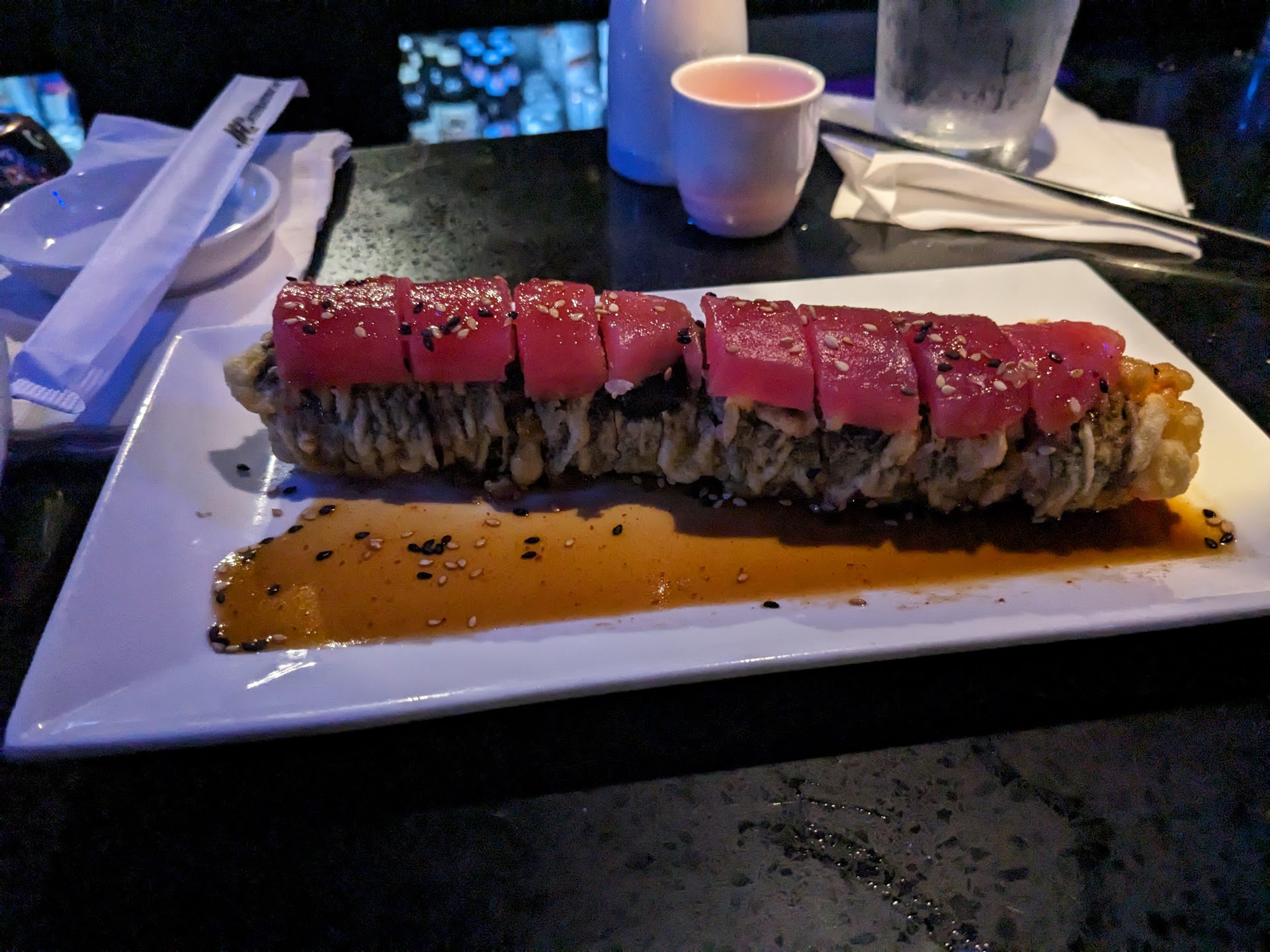 Read moreOne of the worst dining experiences of my life! My grandson chose this restaurant for his 21st birthday dinner. The food was good, but not great. I've had better at much lower costs. The service was lousy. The atmosphere was that of a beer dive, not a nice restaurant. A large table of young adults who acted like they were in a football stadium was seated behind us. We couldn't even carry on a conversation at our table, as they literally yelled profanities to the top of their lungs to others in their party seated at the opposite end of the table. When my son-in-law complained to the owner, one of their party yelled "You are the one making a scene", and one of the "ladies" (I use the term lightly, as she was obviously pregnant and drinking sake) , yelled "We are NOT at your house!". EXACTLY.....you're in public, where there are other patrons that deserve a peaceful dining experience. Does no one have any consideration for others anymore? Well, the owner did nothing about the middle-schoolesque thirty-somethings, who then increased the volume of their vulgarities out of spite. As we rose to leave, the rowdy crowd started yelling at us, so she (the owner) literally SHOVED me out the door before they became violent, while the inept red-haired waitress weighted down with body piercings made a snide comment, something to the effect of "Y'all need to go".She was right....we did, only we should have gone long before that so we wouldn't have the regret of spending one thin dime in this low-class...
