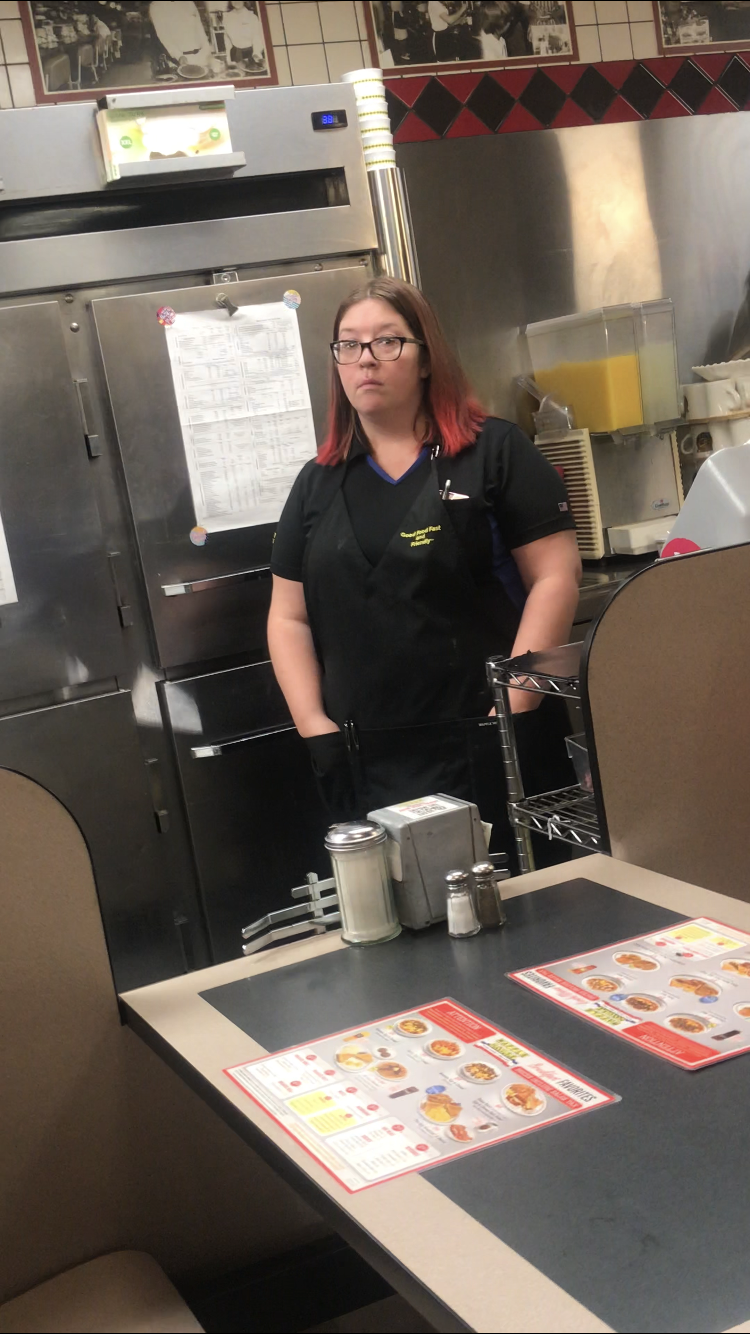 Read moreThe food was pretty good and cheap I love this place. There was an issue with the cook tho.. My friend and I sat down and ordered our food and I watched the cook to see how he was making it. Not one time did I see him change his gloves and he was making a load of scrambled eggs and I’m sure he probably didn’t change his gloves after cracking the eggs which will easily spread salmonella but whatever.. While he was waiting on the food to cook his phone started ringing and he literally was carrying on a conversation with someone on the phone WHILE STILL HAVING HIS GLOVES ON. Do you know how dirty your phone is? Just imagine how many times you have dropped your phone on the ground, possibly in the toilet, you set your phone down on unsanitary tables everyday even in your own home. So to pick up your phone and carry on a conversation while on the job is unnecessary anyways, but to use your gloves to pick it up and then continue to use those same gloves to make my food? Oh no thank you. After he was done with the call, he proceeded to take my friend’s waffle off the iron and put in on the plate, then opened a drawer and dug his hands in a whole container of chocolate chips and put it on my friend’s food. That whole container needed to be thrown away but whatever.. However the reason why I’m giving this 4 stars is just because of that disgusting incident but our waitress nicknamed Sunshine was absolutely great. When I brought it to her attention she had no problem redoing the order again and she even cooked it instead herself. And I really appreciate that, some people would’ve gotten an attitude and just make up some excuse to why they can redo it. With that kind of customer service she...