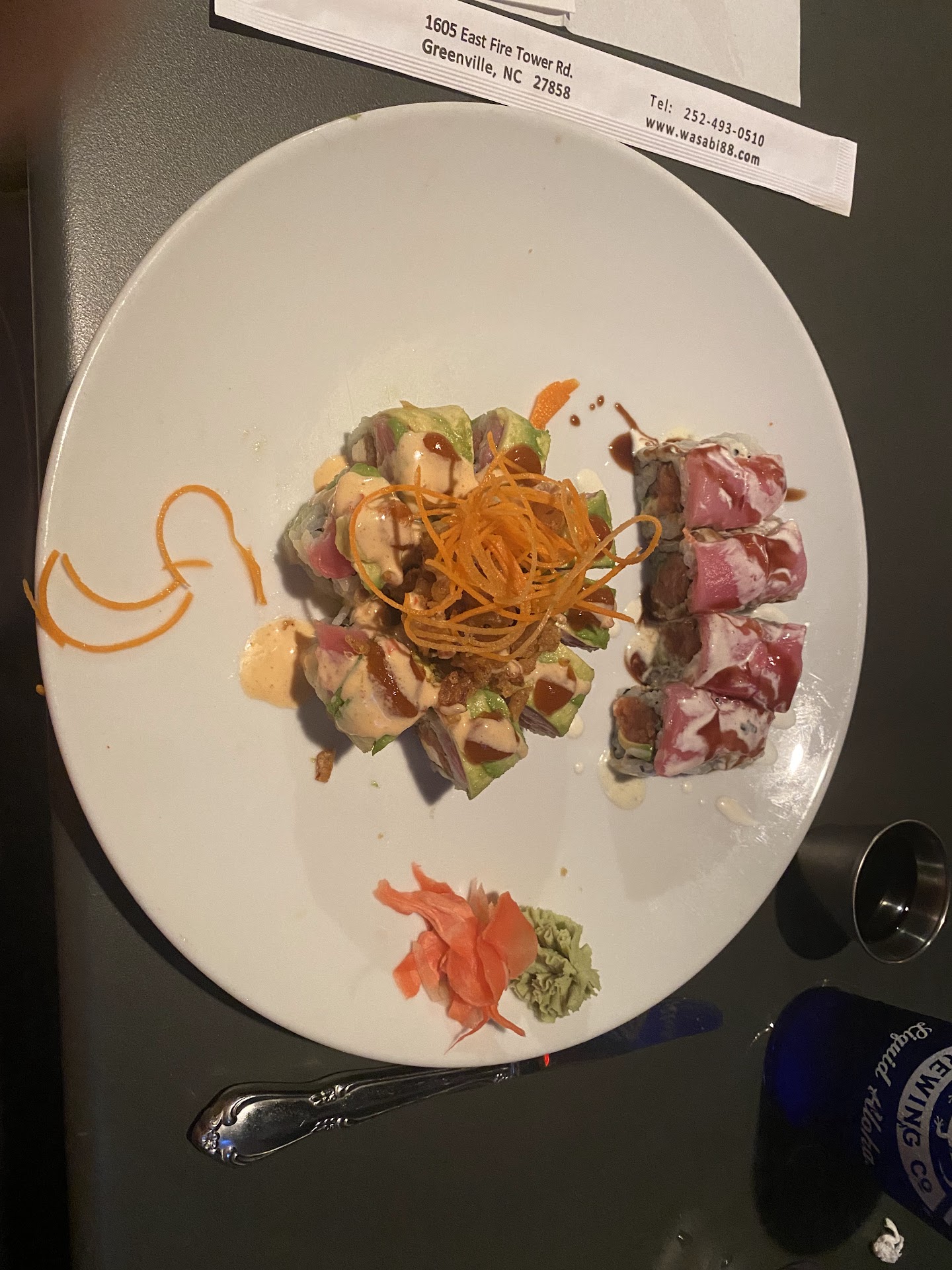 Read moreVery disappointing. Took my husband here for his birthday dinner this Saturday 11/10/18 at 8Pm. You’d think they had the A team working a busy weekend shift- but honestly it wasn’t even that busy. Had the worst service we’ve had in along time! Had to ask for water, plates, & silverware(basics come on & no need to ask for them) -very slow to get even those things. Waited for a bottle of sake for a very very long time. Most of our time spent was just sitting there waiting to catch the waiters attention. Sushi took forever to get. Ordered 3 rolls first- two of them tempura fried & were cold when they arrived so they obviously sat there long enough to cool a lot before getting to us. Waiter came to ask how the sushi was(a little late at that) so we told him the two fried rolls were quite cold & he didn’t even apologize or offer to have them remade or anything just basically ignored our answer & asked if we were ordering anymore rolls. Should have just got the check at that point . Ordered 2 more rolls. To be honest they were all overpriced and the fish content very skimpy. Mind you the rolls are high priced at 15-16$ each. The last roll we ordered was indeed warm like expected but at that point the restaurant had basically cleared out. We ordered in 3 separate waves & each time the rolls came we were never told which ones they are- a new occurrence in a supposedly great sushi joint. We eat a lot of sushi so were able to tell for ourselves but how are you supposed to know which ones you liked better if your waiter doesn’t let you know what’s on the plate when it arrives. I will say that he was nice. 115$ bill. Was very sad because I really wanted to treat my husband for his birthday & make it a special dining experience & was recommended to come here from friends at work. The previous 2 restaurants we attended here in town were Tokyo & Shogun. Got great service both places and the sushi they gave you was worth the price tag-no skimping. I left Wasabi 88 feeling pretty bummed out. We love sushi and don’t mind paying a lot for it but this felt like a rip off. Needless to say we won’t be back. The restaurant itself and decor was pretty cool but the service and food is what makes a place worth...