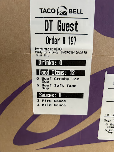 Read moreI have been to this Taco Bell multiple times and they overcharged me multiple times. The last time about 20 minutes ago, I tell the girl she rung it up wrong. She calls for some guy. I tell him I go to Taco bell all the time and get the same thing and it should be 22 something. Which he lies and says all the Taco bells have different owners and different prices. So I show him on the app on my phone that the price is 22 dollars and some change. He says that the online price is different. He was just making up anything to get me out of the window. The last time another girl told me it was 28 dollars instead of 22 because of taxes. My kids were so excited that they opened a closer TB but.. Go to one in Mantua its further but much better service. Probably will never here go again and i live 2...