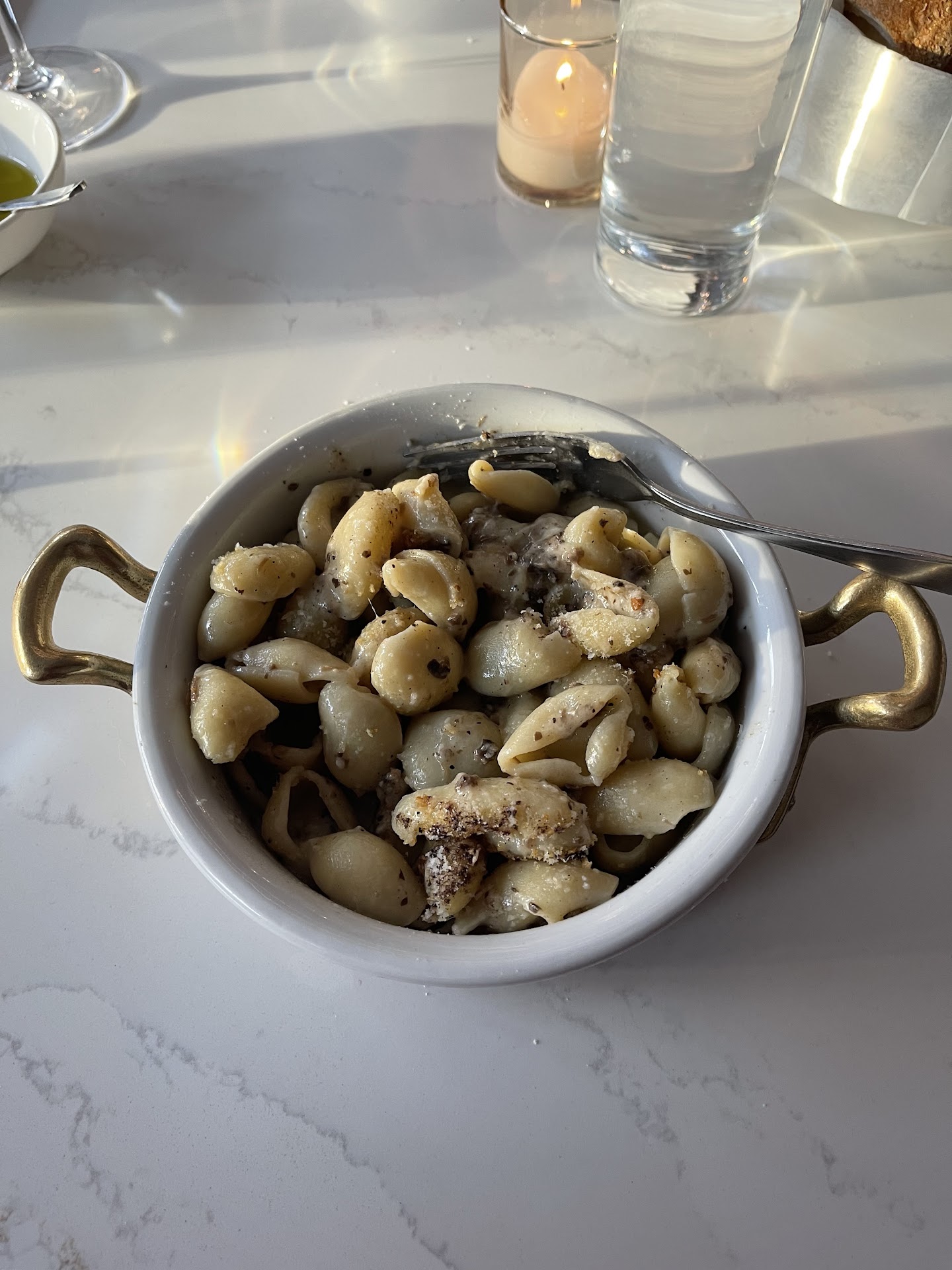 The cacio di pepe was really good. Unfortunately. I thought grated cheese was in the tiny ramekin. Turned out, it was salt, which I figured out too late. To my credit, my table was really dark, but I was still able to salvage the pasta on the bottom of the bowl. It was a huge portion.